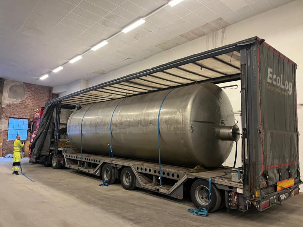 Här levererade vi en 100m³ rostfri, isolerad livsmedelstank till Falköpings Kommun.