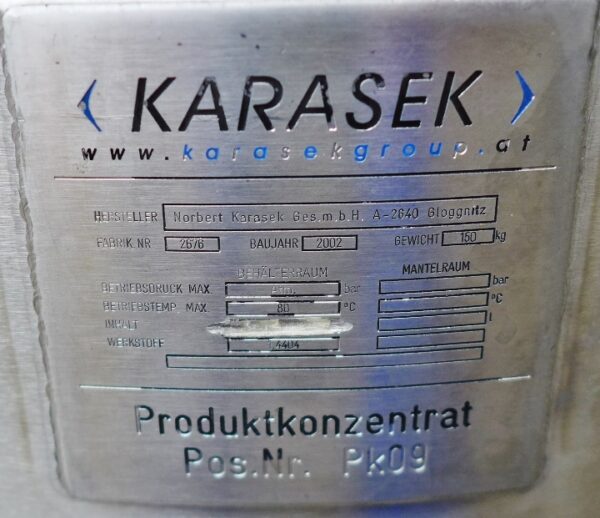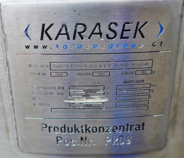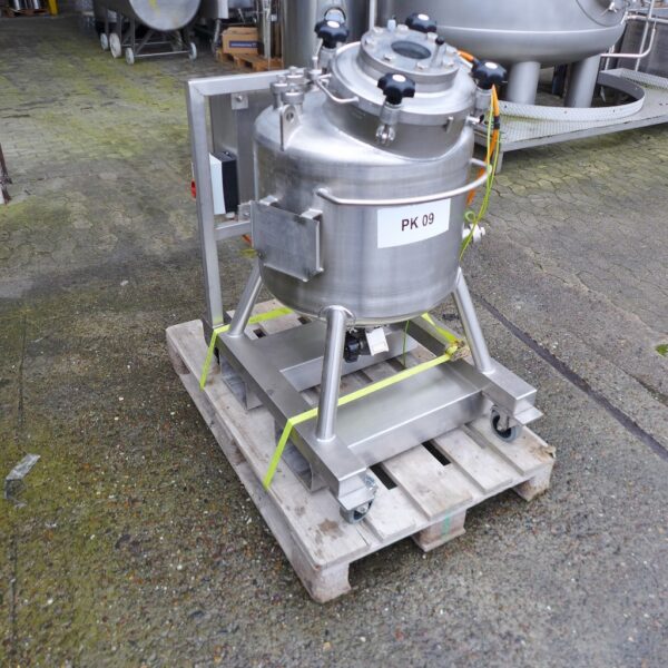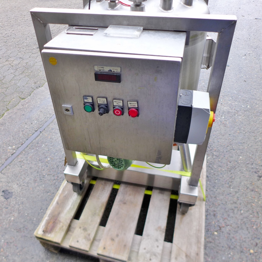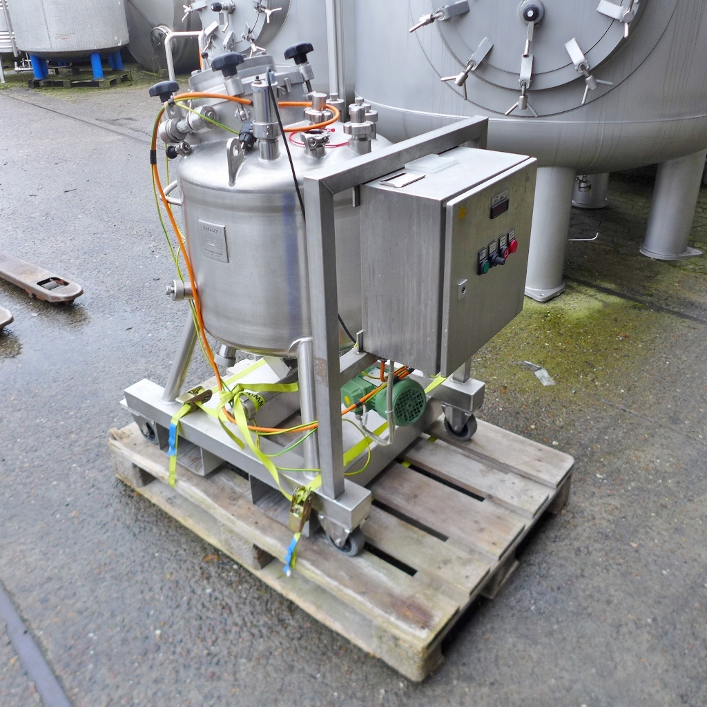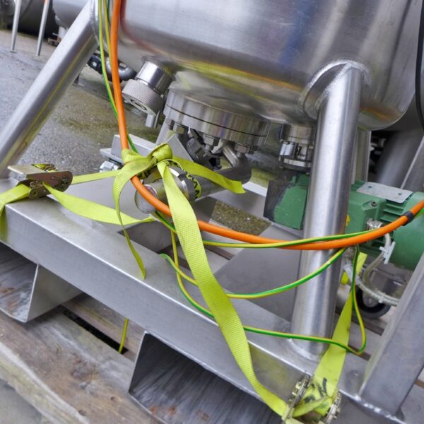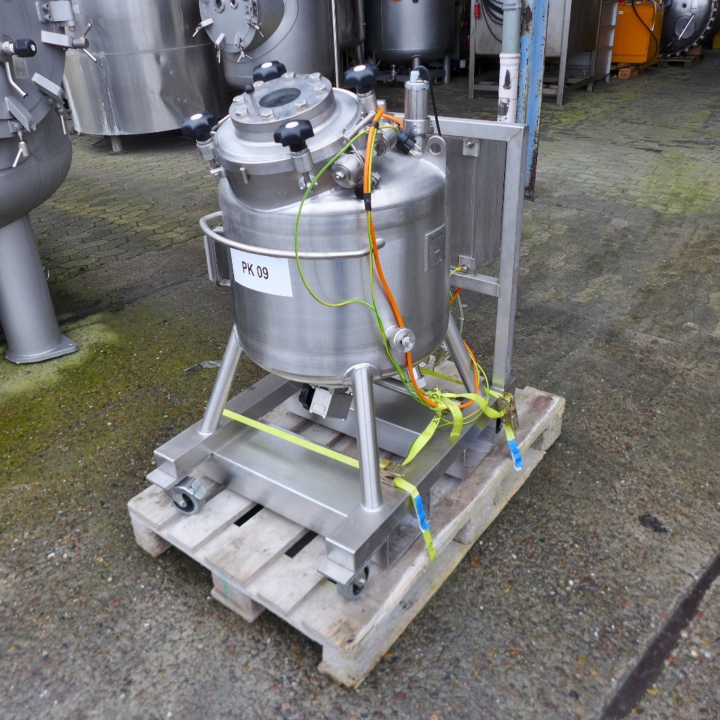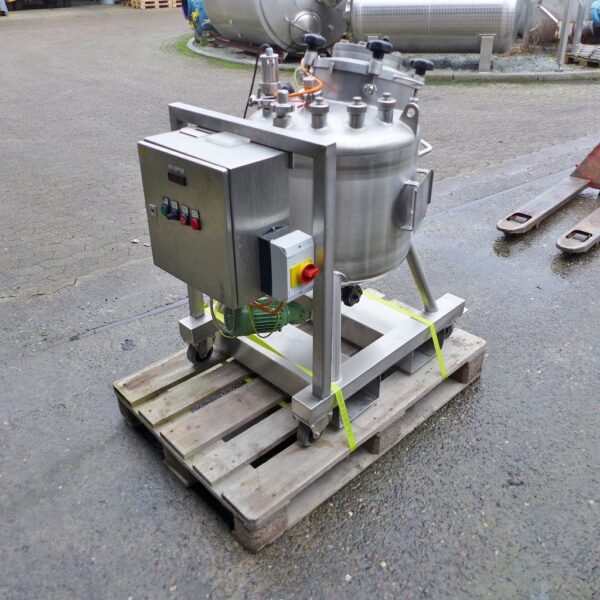 Mobile frame, Aiai 304; Manhole diameter approx. 300 mm; slight metallic discoloration inside the tank; we can’t give any guarantees about the agitator