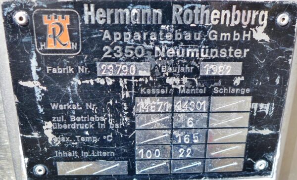 pharmacy; frame and cover, Aisi 304; some residues of previous content; we can’t give any guarantees about the heating/cooling jacket