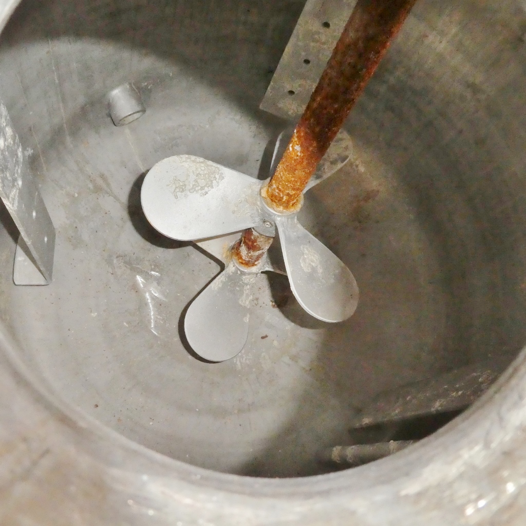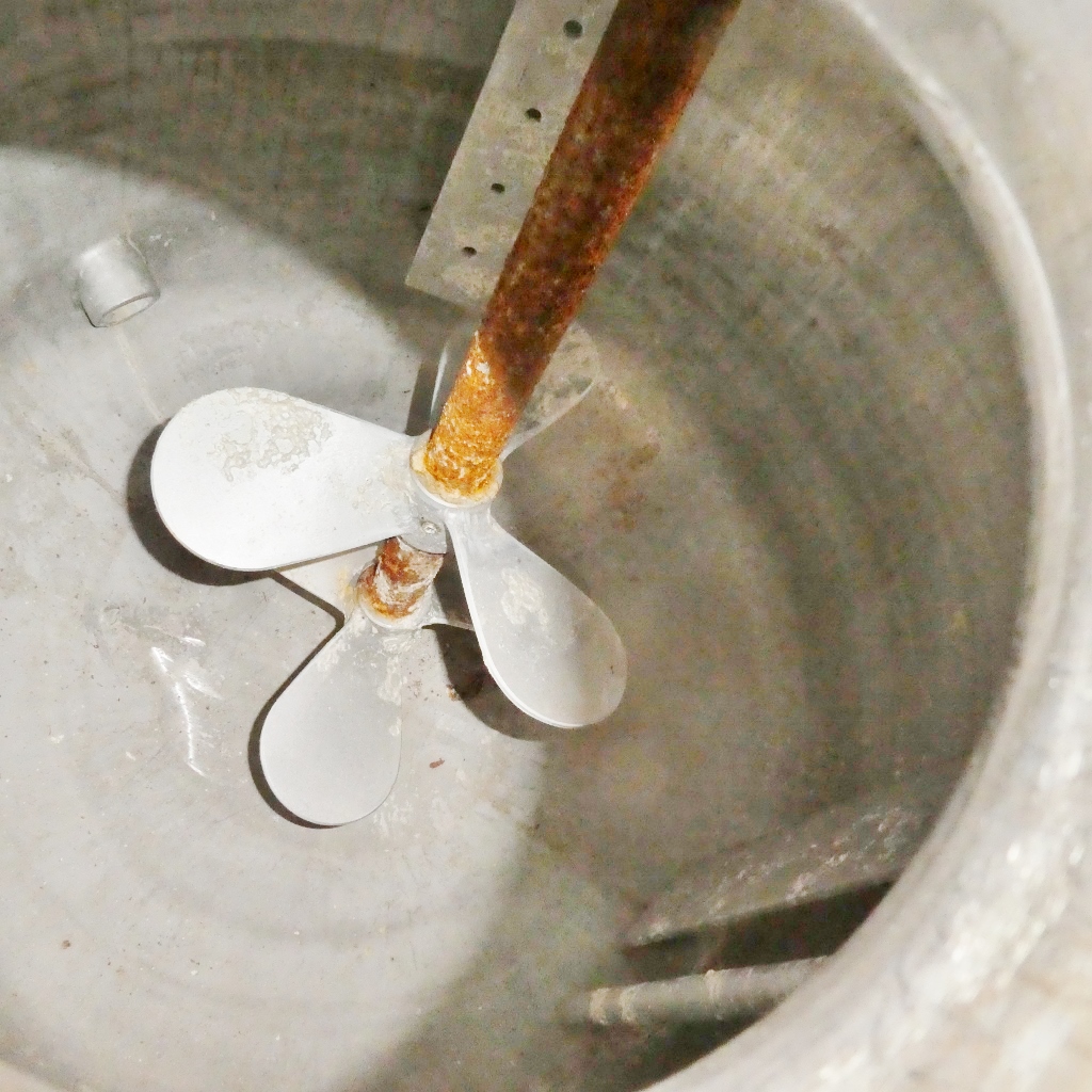 bitumen; support brackets made of mild steel; some residues of previous content; we can’t give any guarantees about the agitator
