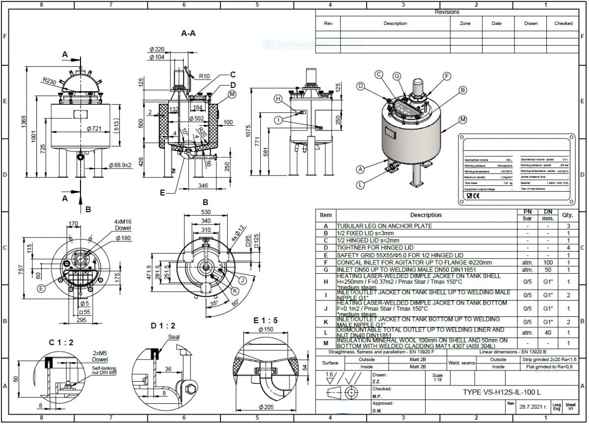 Typ av värmeväxlare på cylinder: dimple-jacket