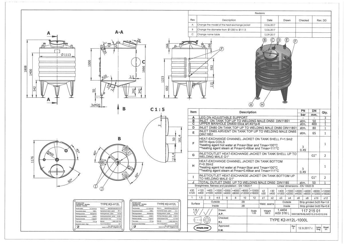 1000 liter tank i Syrafast 316