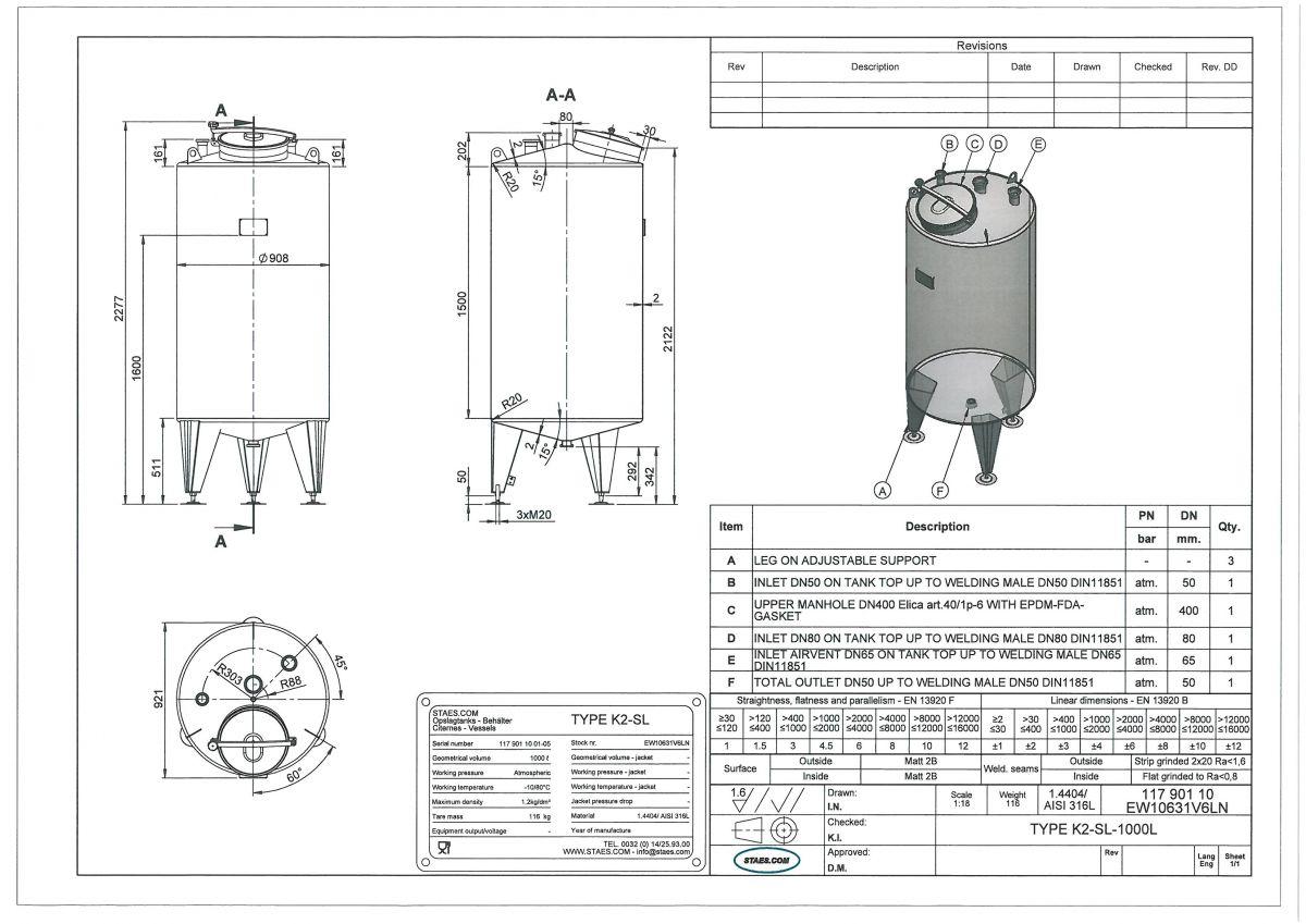 1000 liter tank i Syrafast 316