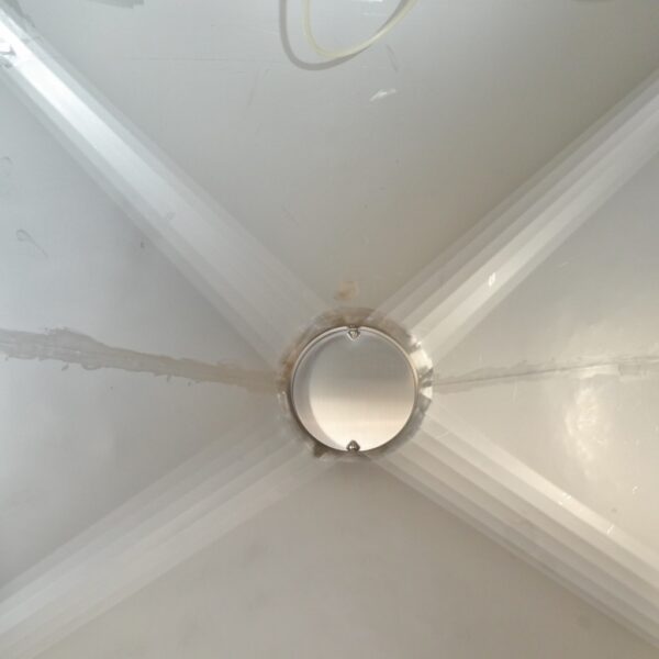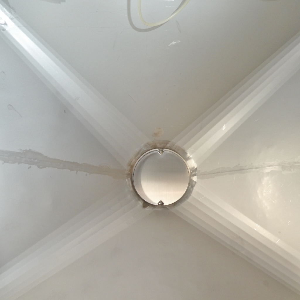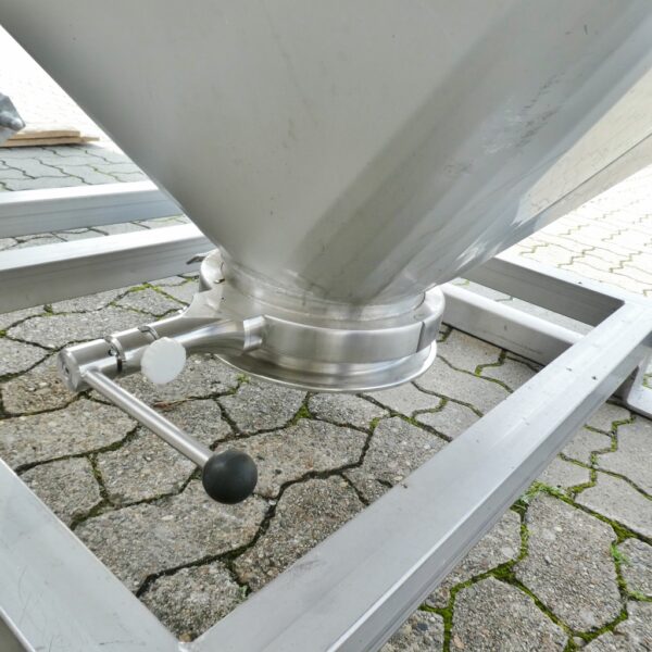 pharmacy; basic dimensions inside appr. 990 x 1.190 mm; cone height appr. 600 mm; frame Aisi 304; hand lever of 1 butterfly valve is bent