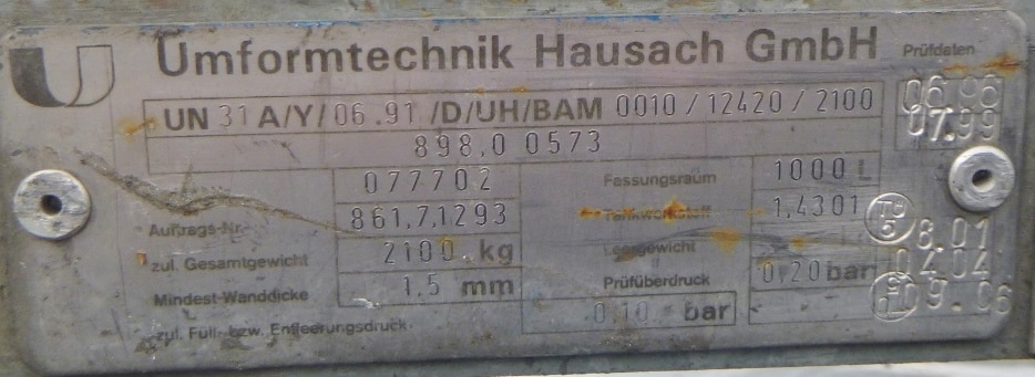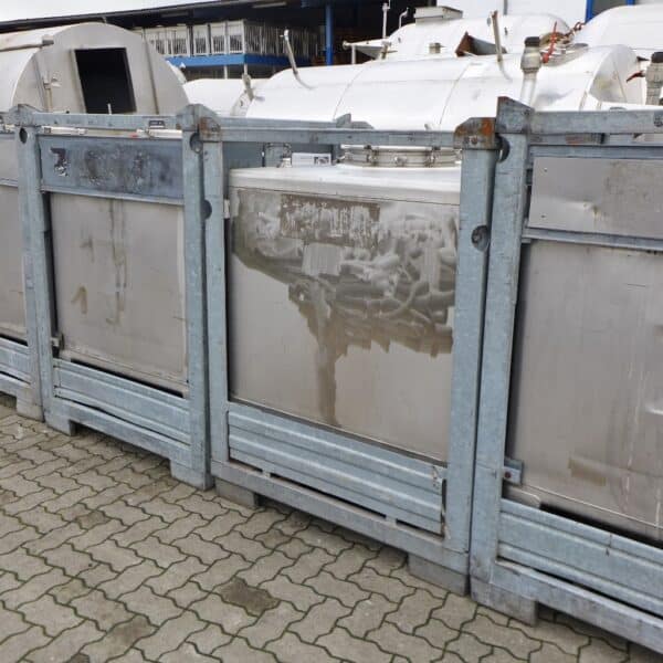Chemistry; Frame, Fe (galvanized; partly slightly bent or showing signs of corrosion); slight differences in the design of the containers possible; Smaller dents in the container walls are possible