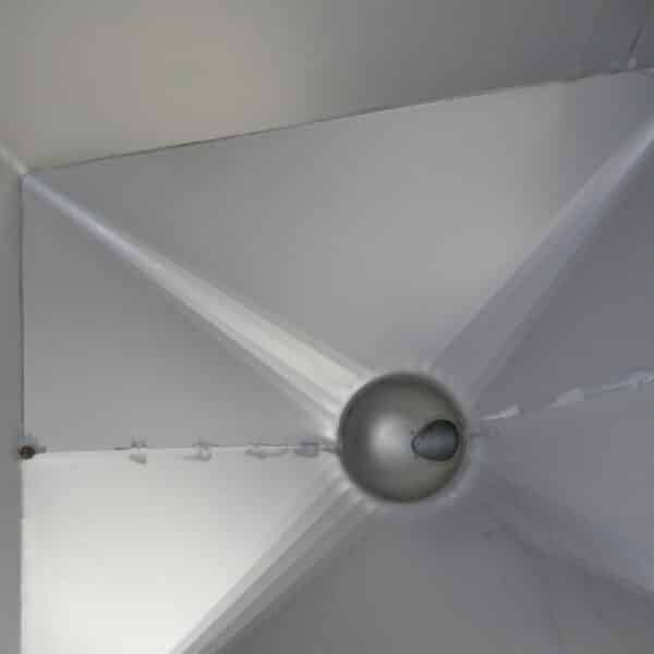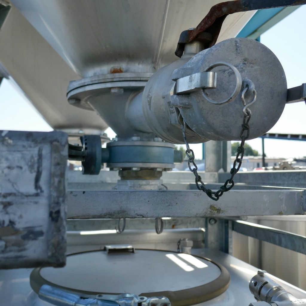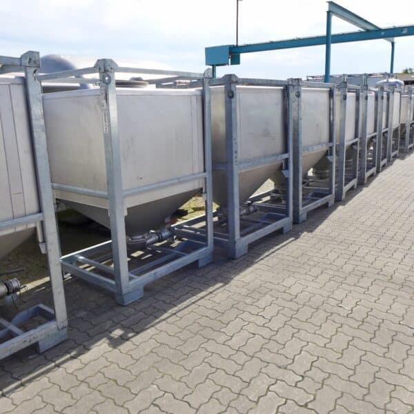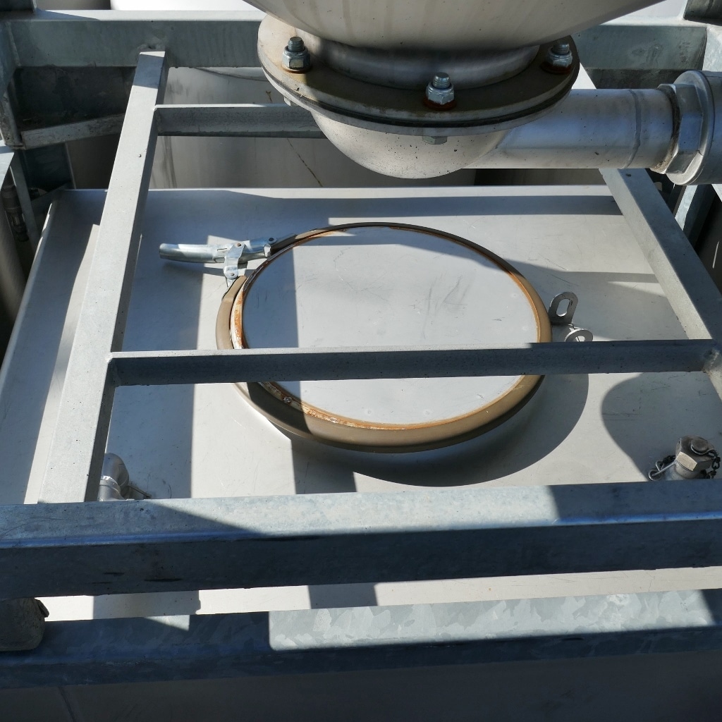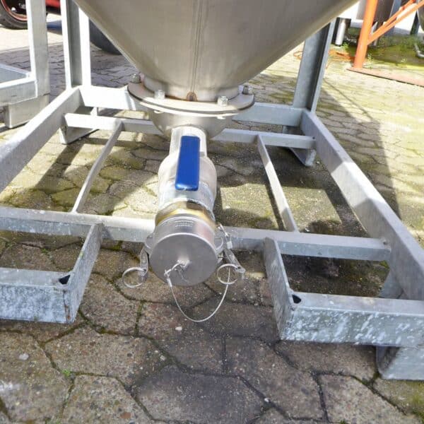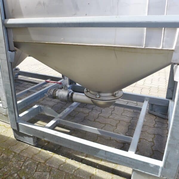 Chemistry; (Frame made of Fe (galvanized, partially slightly bent); cone height: approx. 446 mm; outlet consisting of 3" socket ball valve with TW male coupling VK 80 made of brass and blind cap MB