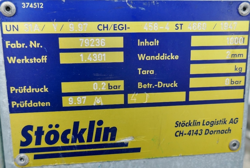 Alcohols and/or test fuels; Frame, Fe (galvanized); slight differences in design possible; Ball valve made of brass (nickel-plated);; some residues of previous content;traces of usage