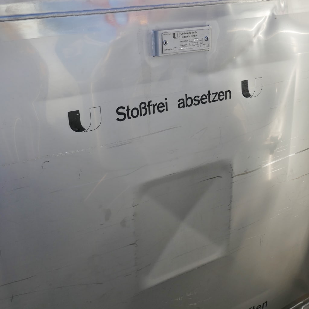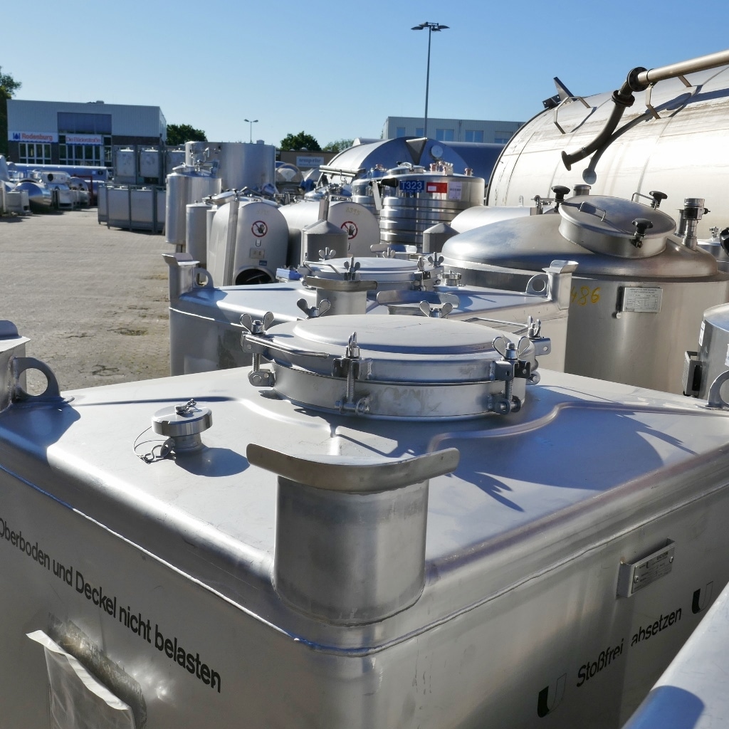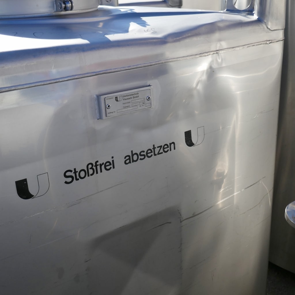 1000 liter tank i Rostfritt 304 är en industriell tank som möter kraven inom kemikaliehantering. Kombinationen av volym: 1000 liter, begagnad, med ett arbetstryck på ATM - atmosferic, vätskeberörd yta: SS AISI 304 (V2A), konfiguration: single-skin, stationär tank, total urtappning finns, utan dokumentation, utan teknisk ritning, med märkskylt, utan fläns för omrörare, modell: Vertikal, tillverkad i Rostfritt 304, utan omrörare, utan uppvärmning/kylning, utan isolering, total höjd: 1.500 mm, vikt: 130 kg och genomtänkt design ger minimalt underhåll.