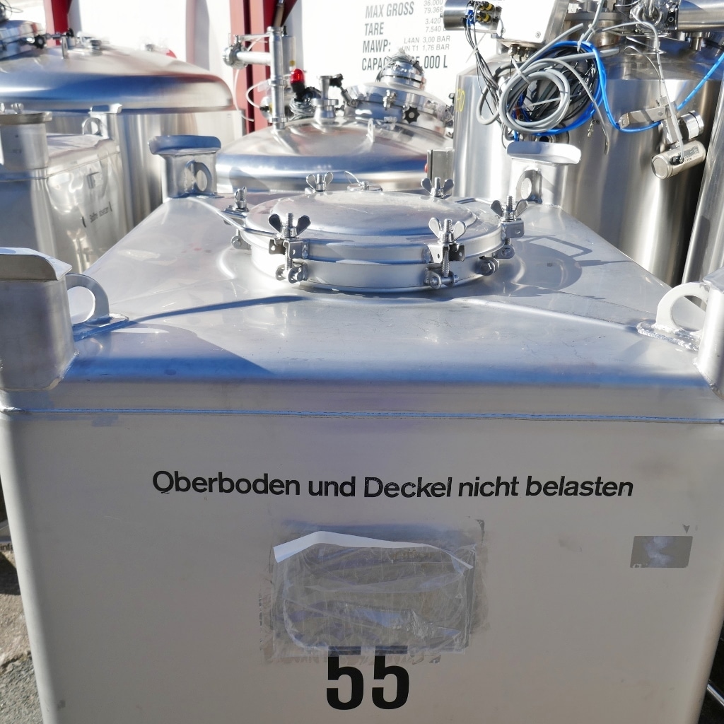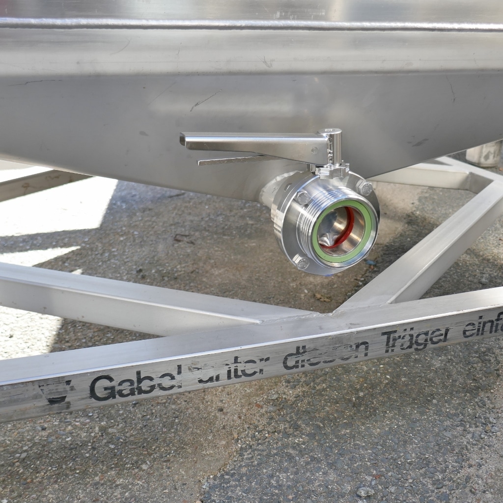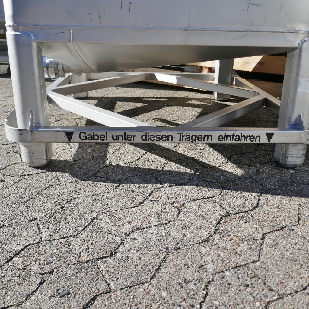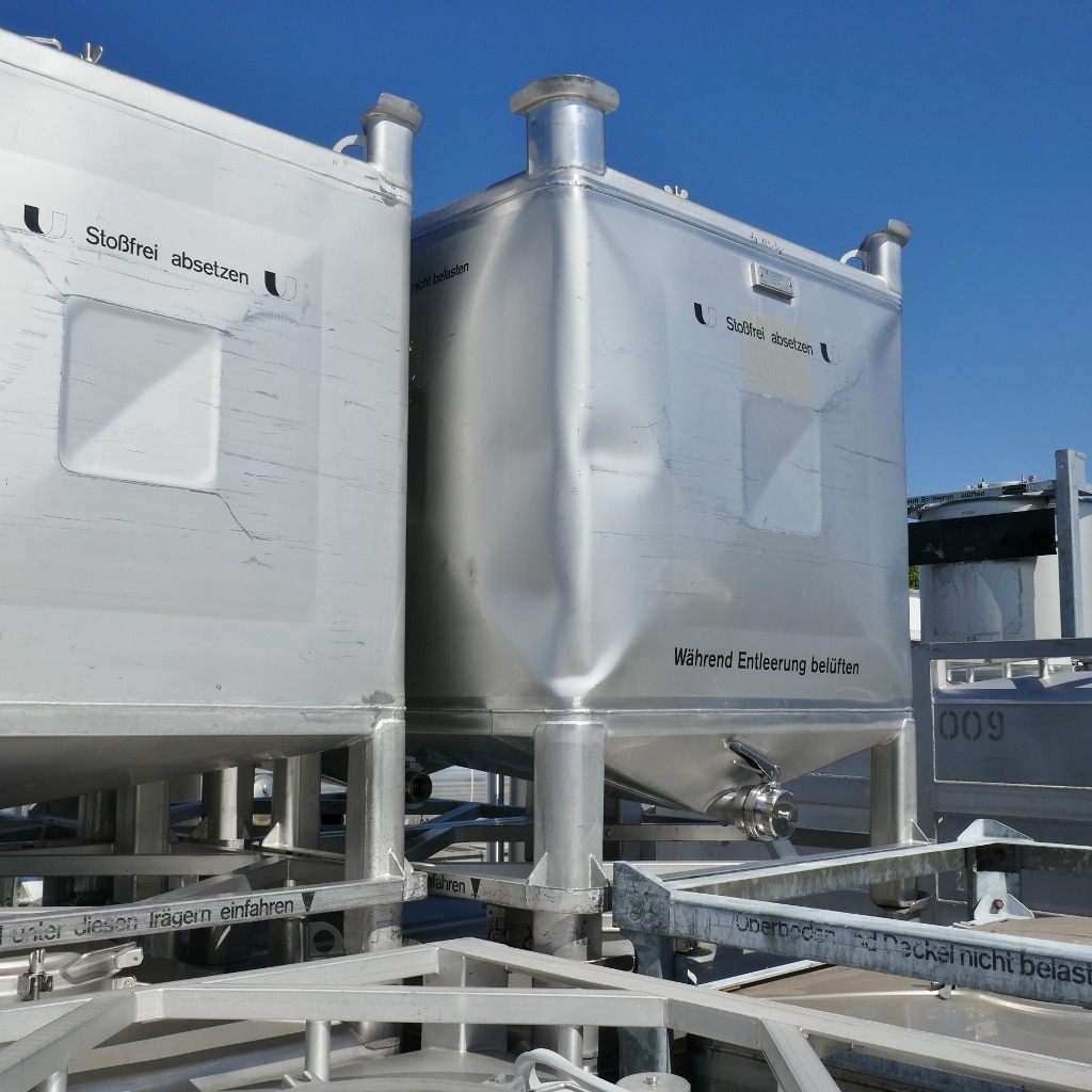 1000 liter tank i Rostfritt 304 är en industriell tank som möter kraven inom kemikaliehantering. Kombinationen av volym: 1000 liter, begagnad, med ett arbetstryck på ATM - atmosferic, vätskeberörd yta: SS AISI 304 (V2A), konfiguration: single-skin, stationär tank, total urtappning finns, utan dokumentation, utan teknisk ritning, med märkskylt, utan fläns för omrörare, modell: Vertikal, tillverkad i Rostfritt 304, utan omrörare, utan uppvärmning/kylning, utan isolering, total höjd: 1.500 mm, vikt: 130 kg och genomtänkt design ger minimalt underhåll.