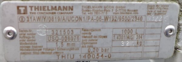 1000 liter tank i Rostfritt 304