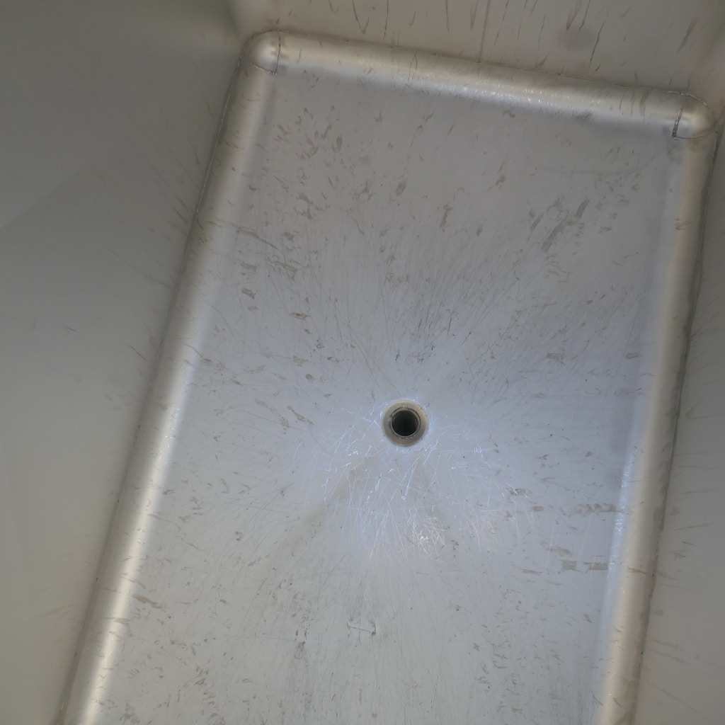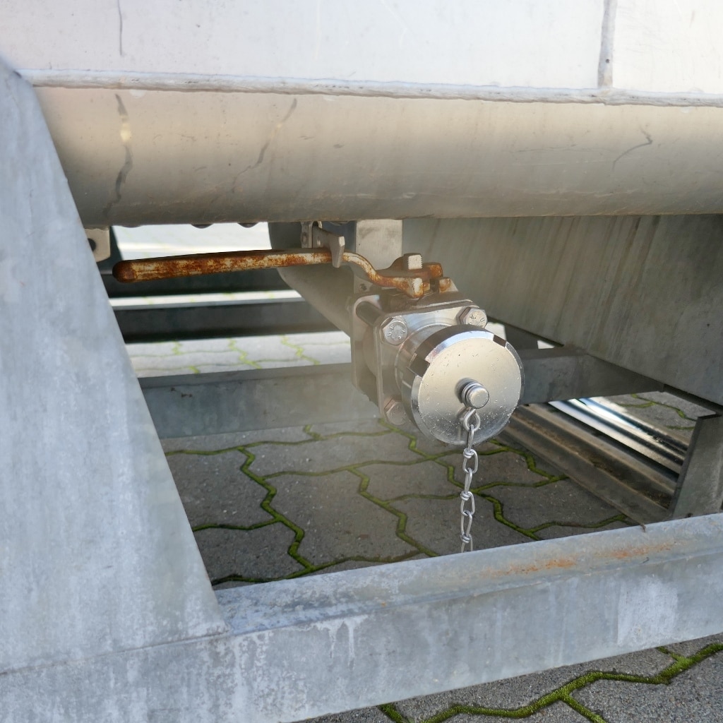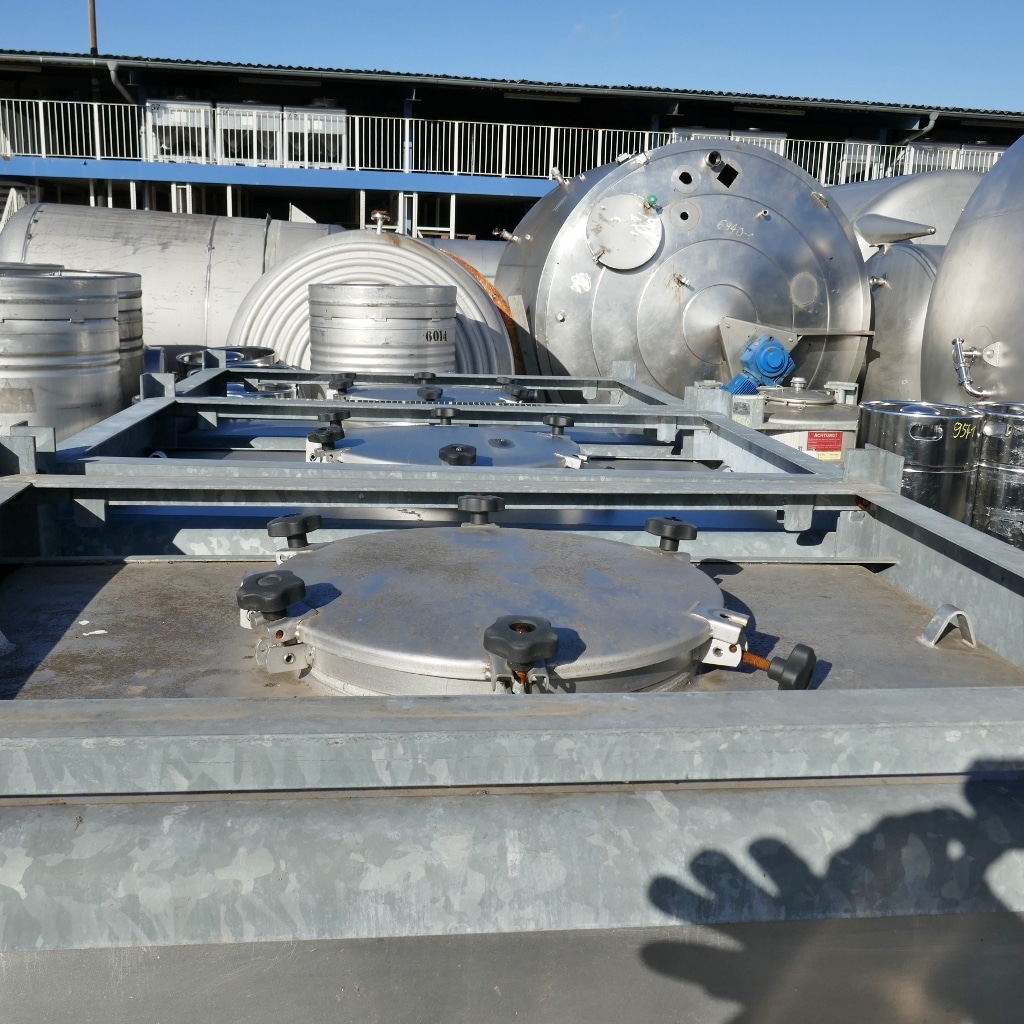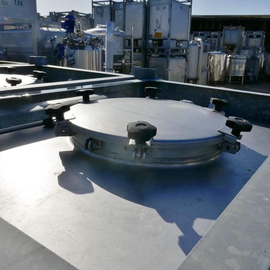 Fixing varnish; Frame, Fe (galvanized); diameter of manhole approx. 415 mm (for 2 containers, the fastening screws of the manhole cover are made of Fe (galvanized; with signs of corrosion); traces
