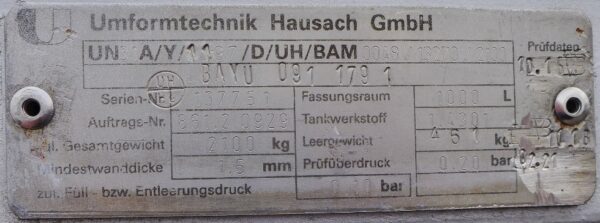 1000 liter tank i Rostfritt 304