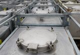 plasticizer; Frame Fe (galvanized); Frame partly with signs of corrosion; Basic frame dimensions: 1030 x 1230 mm; Manhole diameter approx. 400 mm; some residues of previous content