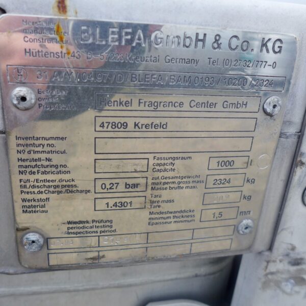 1000 liter tank i Rostfritt 304