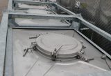 Cosmetics; Frame, Fe (galvanized); screw connections of the manhole covers partially incomplete; some residues of previous content;traces of usage