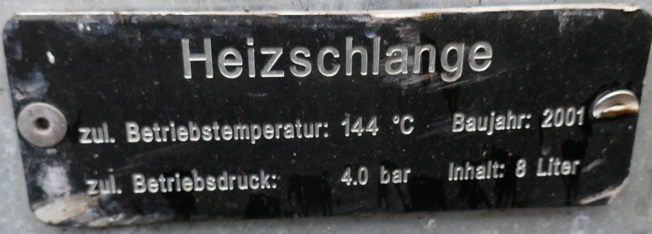 Confectionery industry; Frame, Fe (galvanized); double jacket must be filled with heat transfer oil on site for heating; this is heated by a heating coil (content: 8 liters; permissible operating