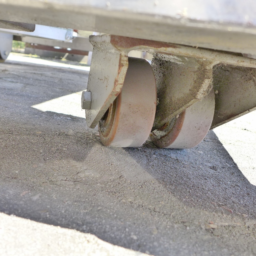 Pharmacy; Frame, Aisi 304, mobile with screwed-on plastic rollers (guides for the rollers made of Fe; see photos); Basic dimensions inside approx. 1,190 x 1,190 mm
