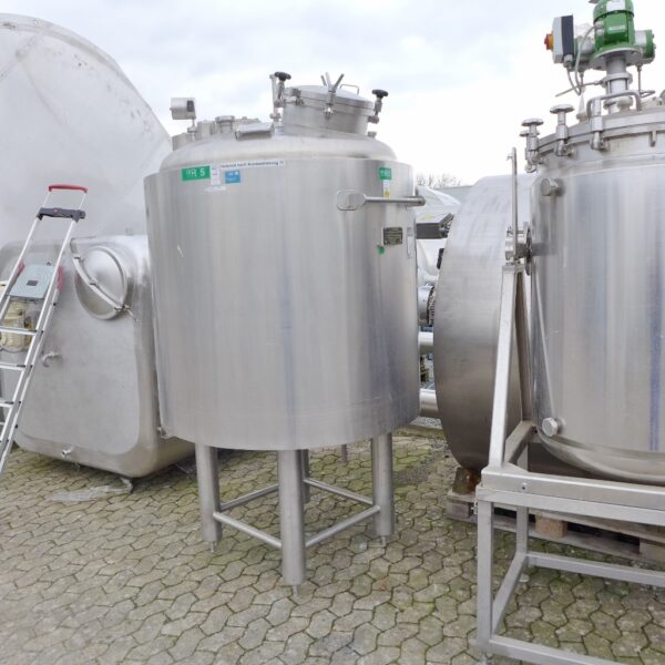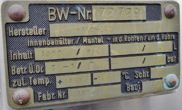 Slight metallic discoloration inside the tank; Flange fitting of the outlet incomplete (see photos); we can’t give any guarantees about the heating/cooling jacket; we can’t give any guarantees about