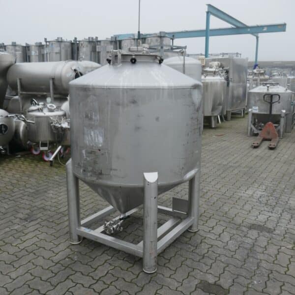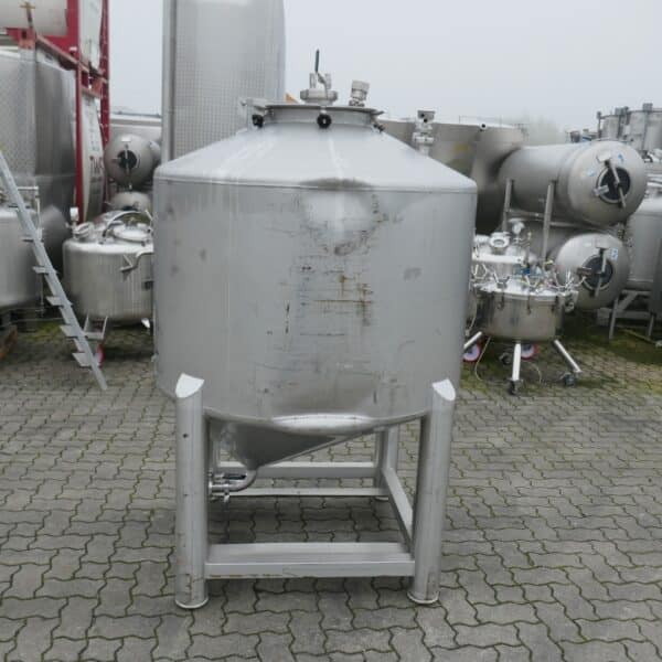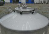 Pharmazie; Durchmesser Mannloch ca. 385 mm; 2 stärkere Beulen im Übergang des Zylinders zu den Böden; leichter Korrosionsansatz im Inneren des Containers