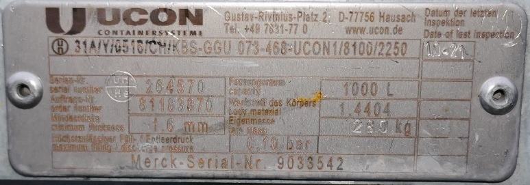 Additional information: solvents; Frame, Fe (galvanized); further technical documents available; 2 dip tubes inside each container (see photos); traces of usage