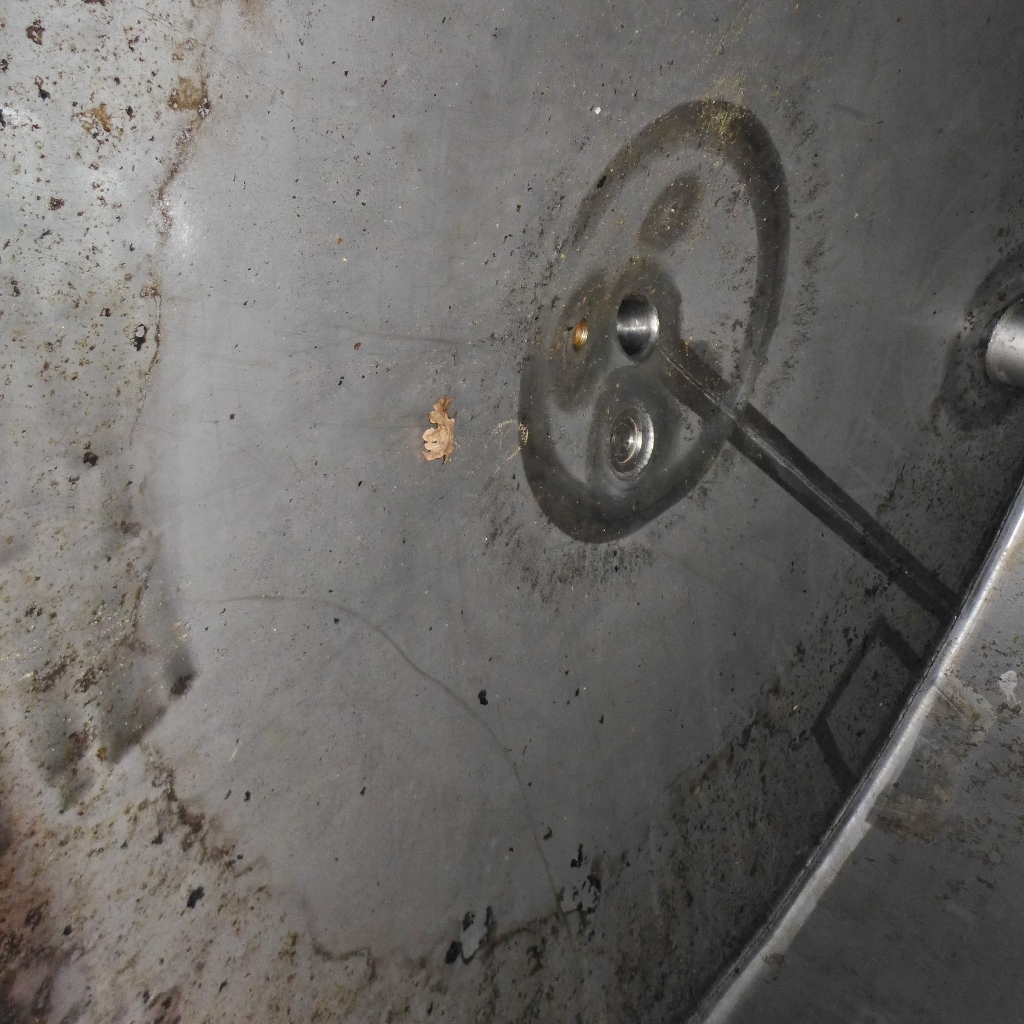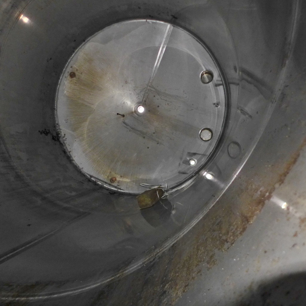 Connections in the upper bottom partially welded shut (see photos); some residues of previous content;pipe end cut flush
