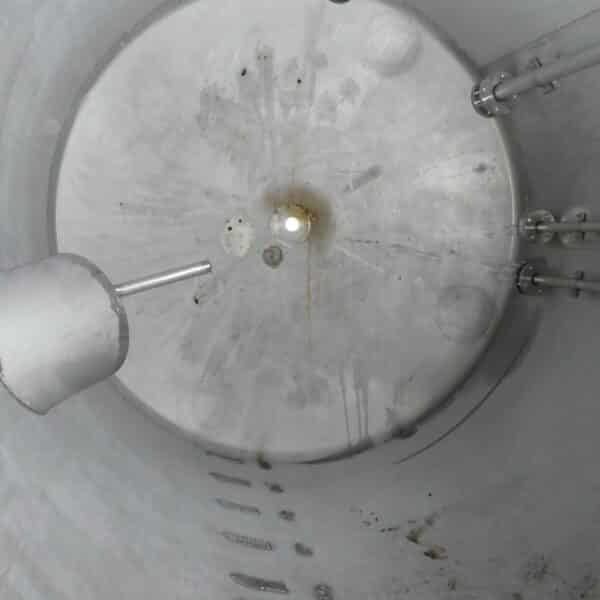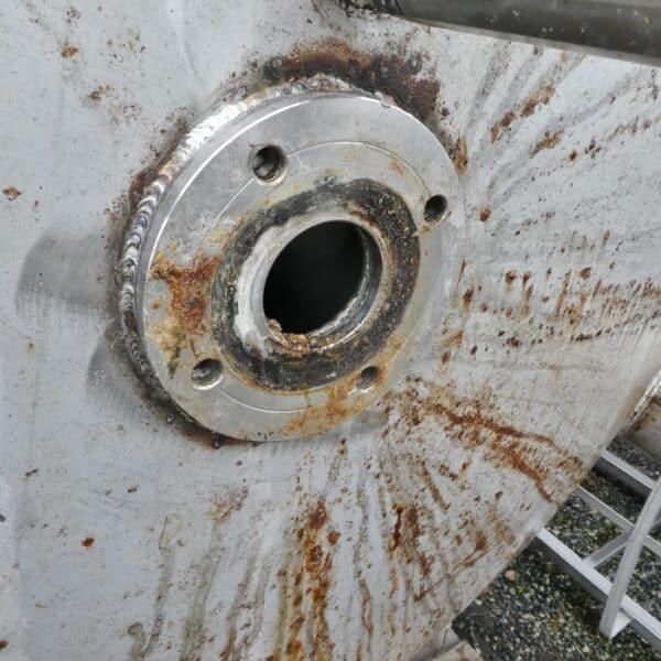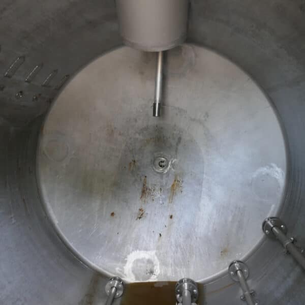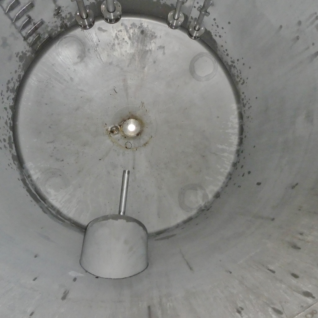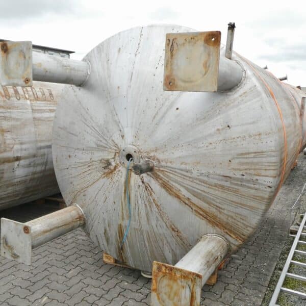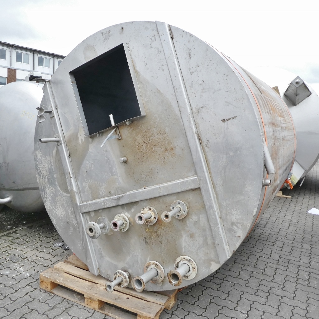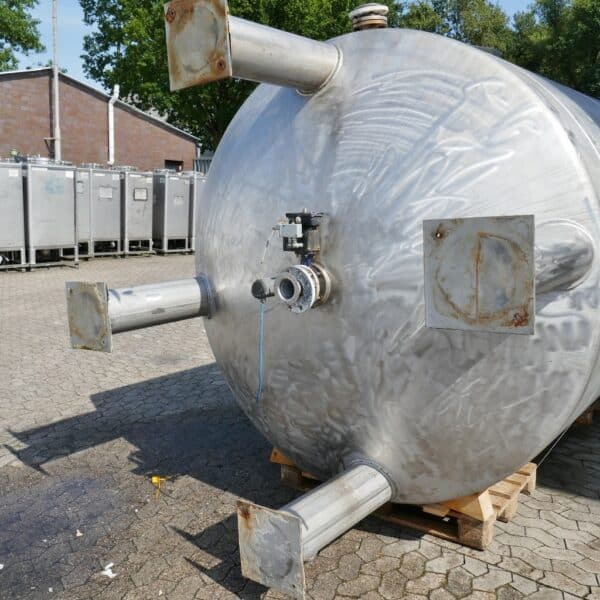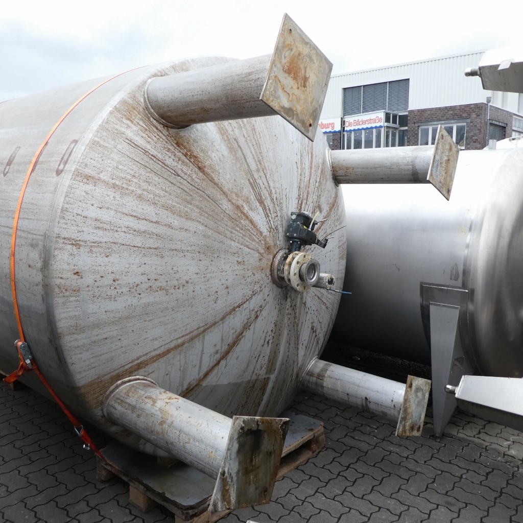 Detergent production; Slight differences in design, e.g. B. outlets; rectangular opening approx. 600 x 600 mm in the upper bottom; various small rust spots on the outside (see photos); 2 tanks with