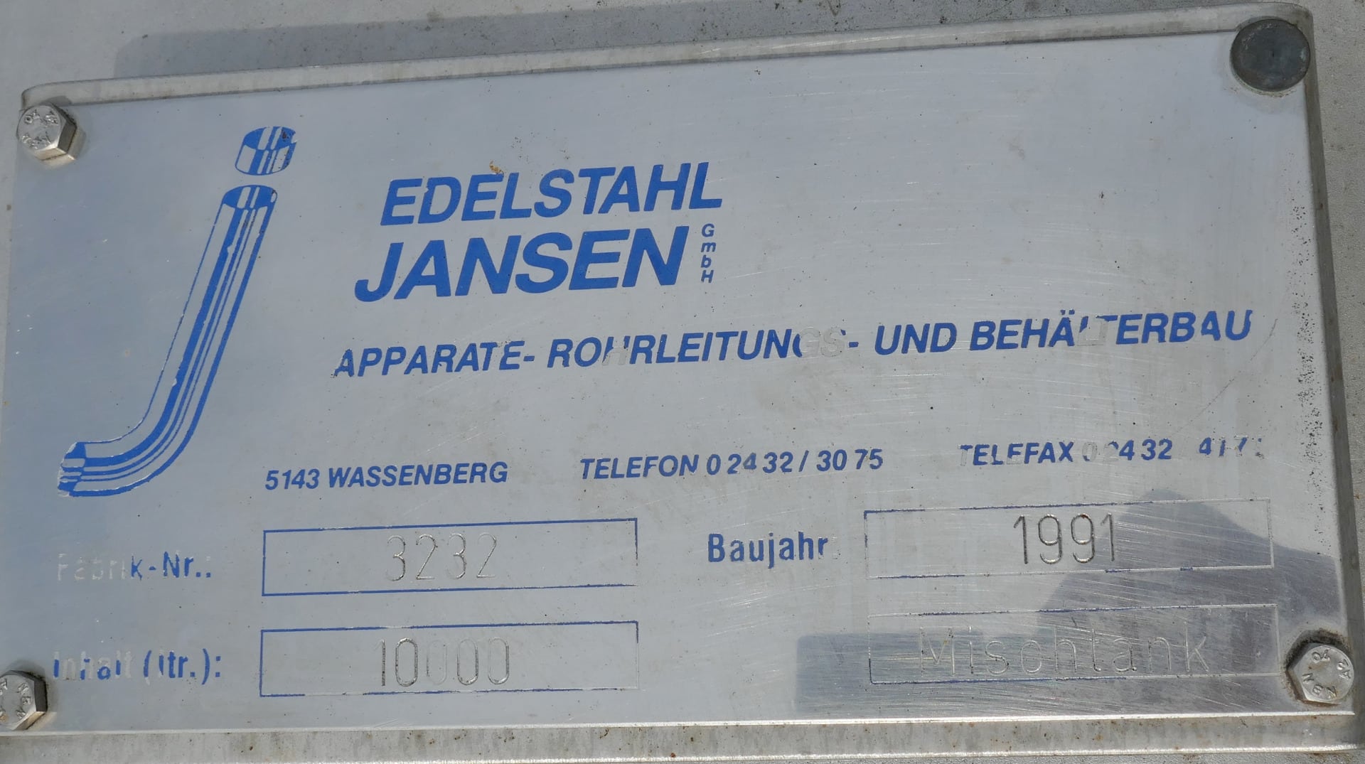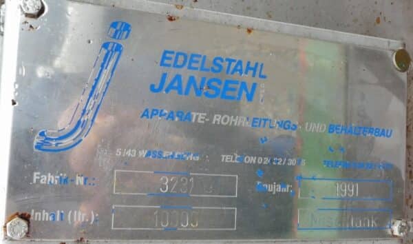 10000 liter tank i Rostfritt 304