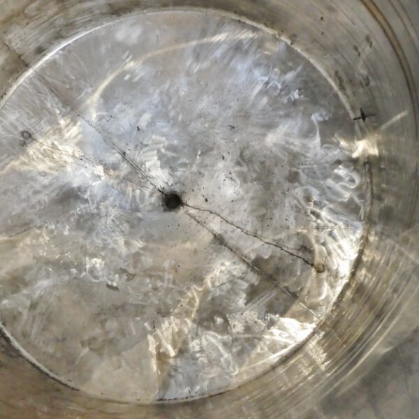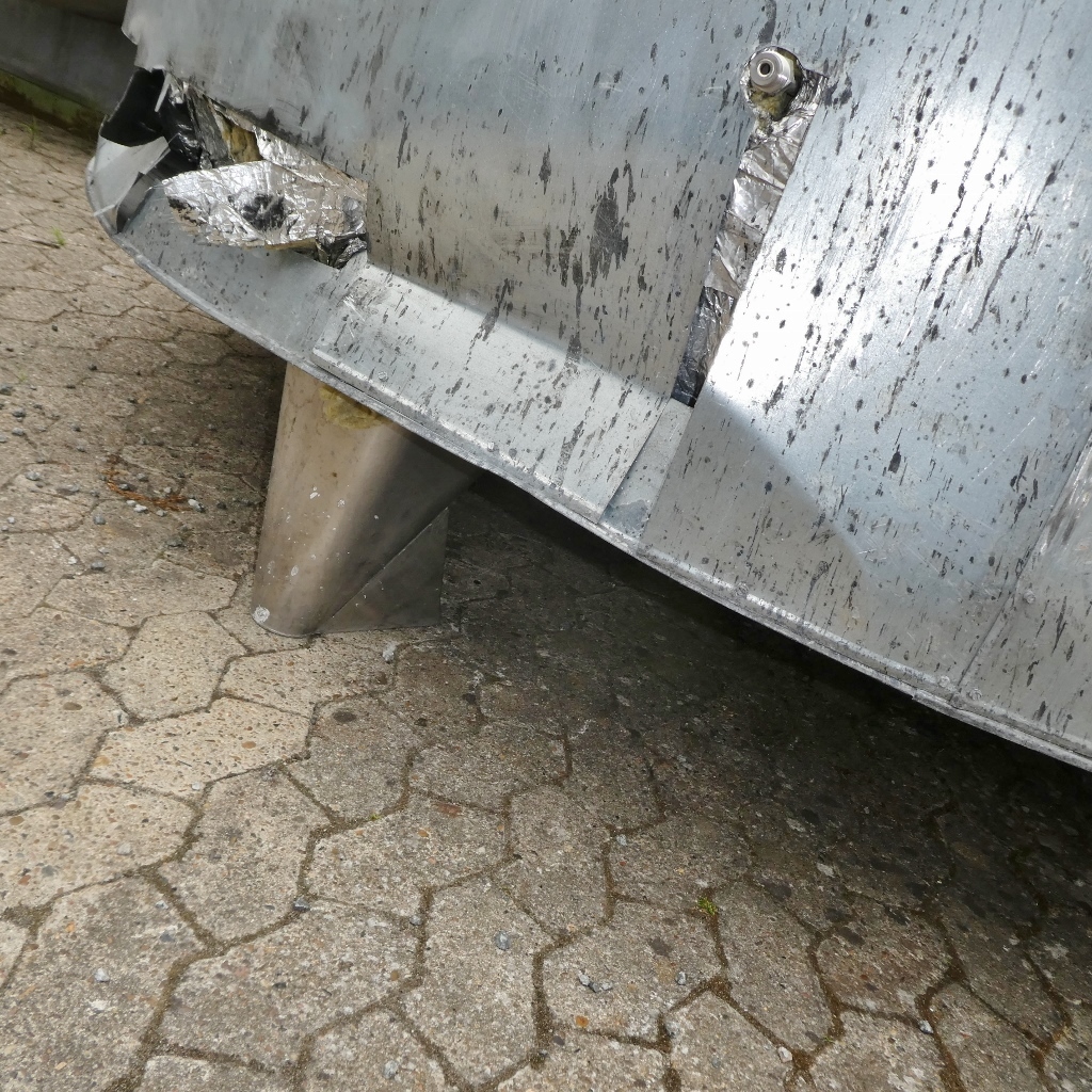 seal manufacturing; insulation jacket with dents and metal cutoffs; 1 bent connection in the upper bottom; slight metallic discolourations inside; some residues of previous content; we can’t give