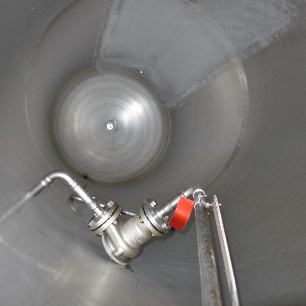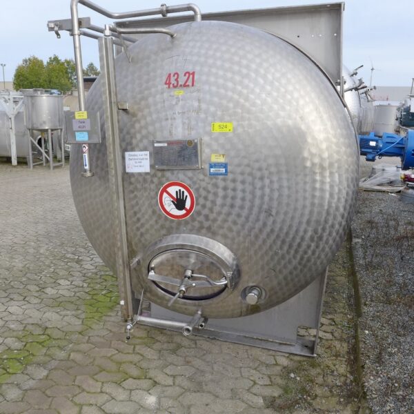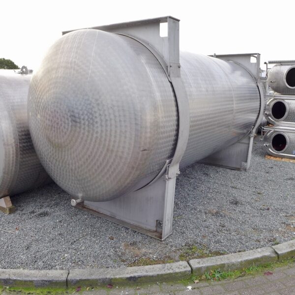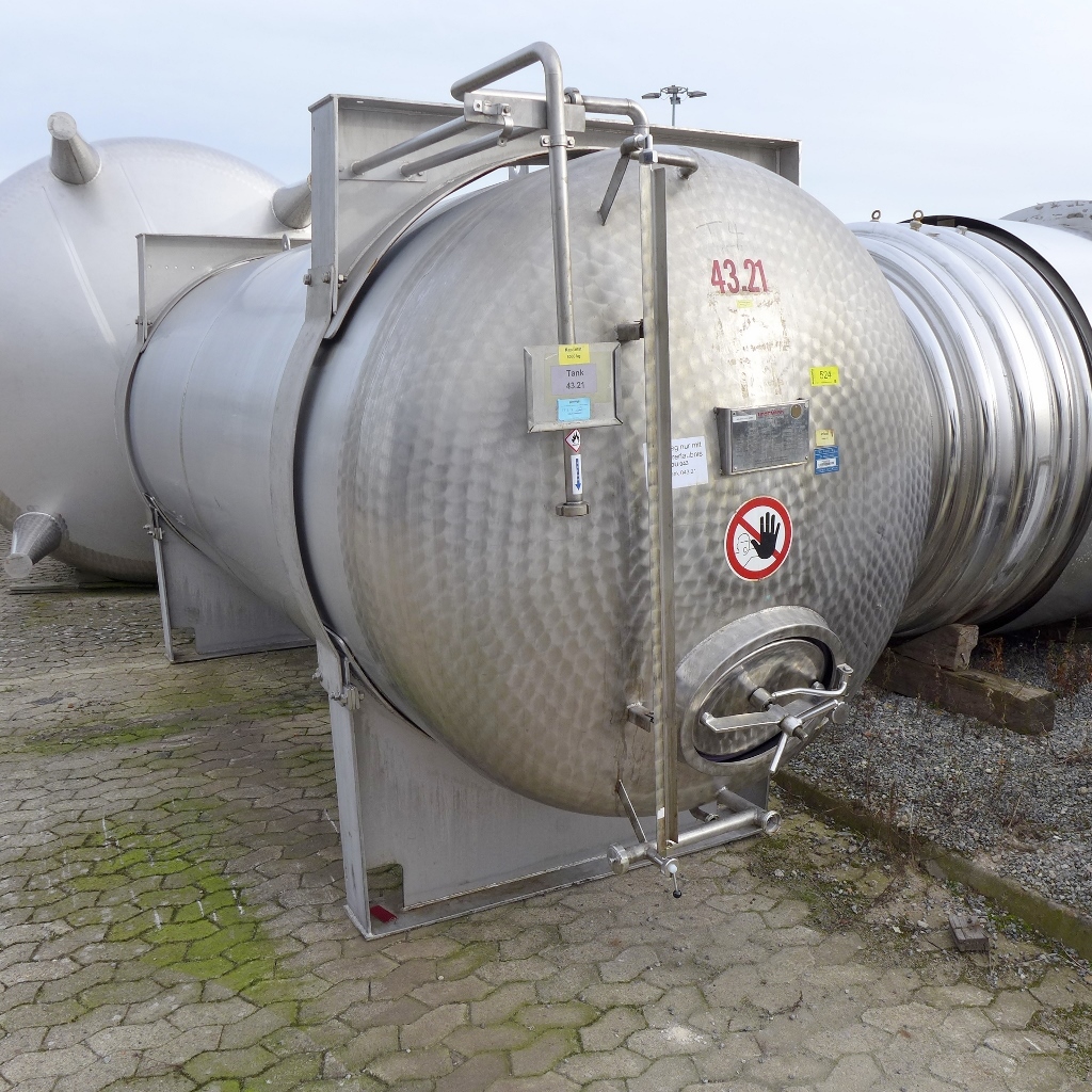 Fragrance production (alcoholic scents) ; storage frame, Aisi 304; 1 manhole approx. 345 x 440 mm in the front bottom; 1 tank marbled on the complete outside, the other tank only on the front