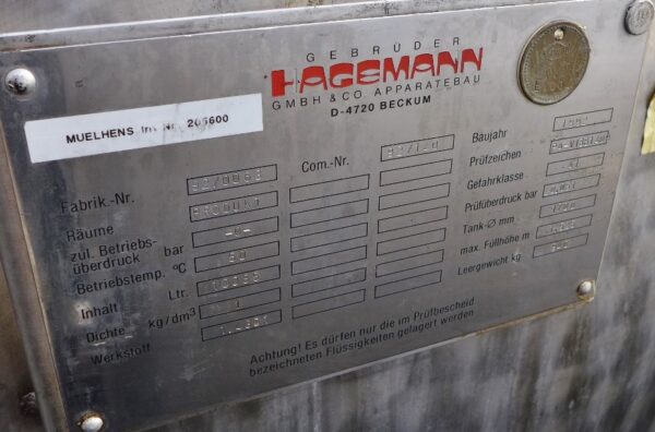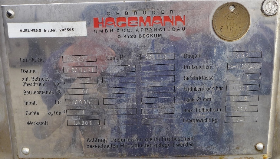 bottom; the previous operator had 2 similarly constructed tanks screwed to the storage frame of these tanks (we currently offer these tanks under order no. 8909; while stocks last)