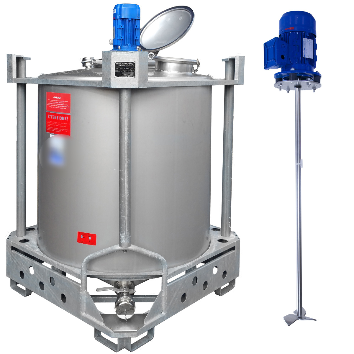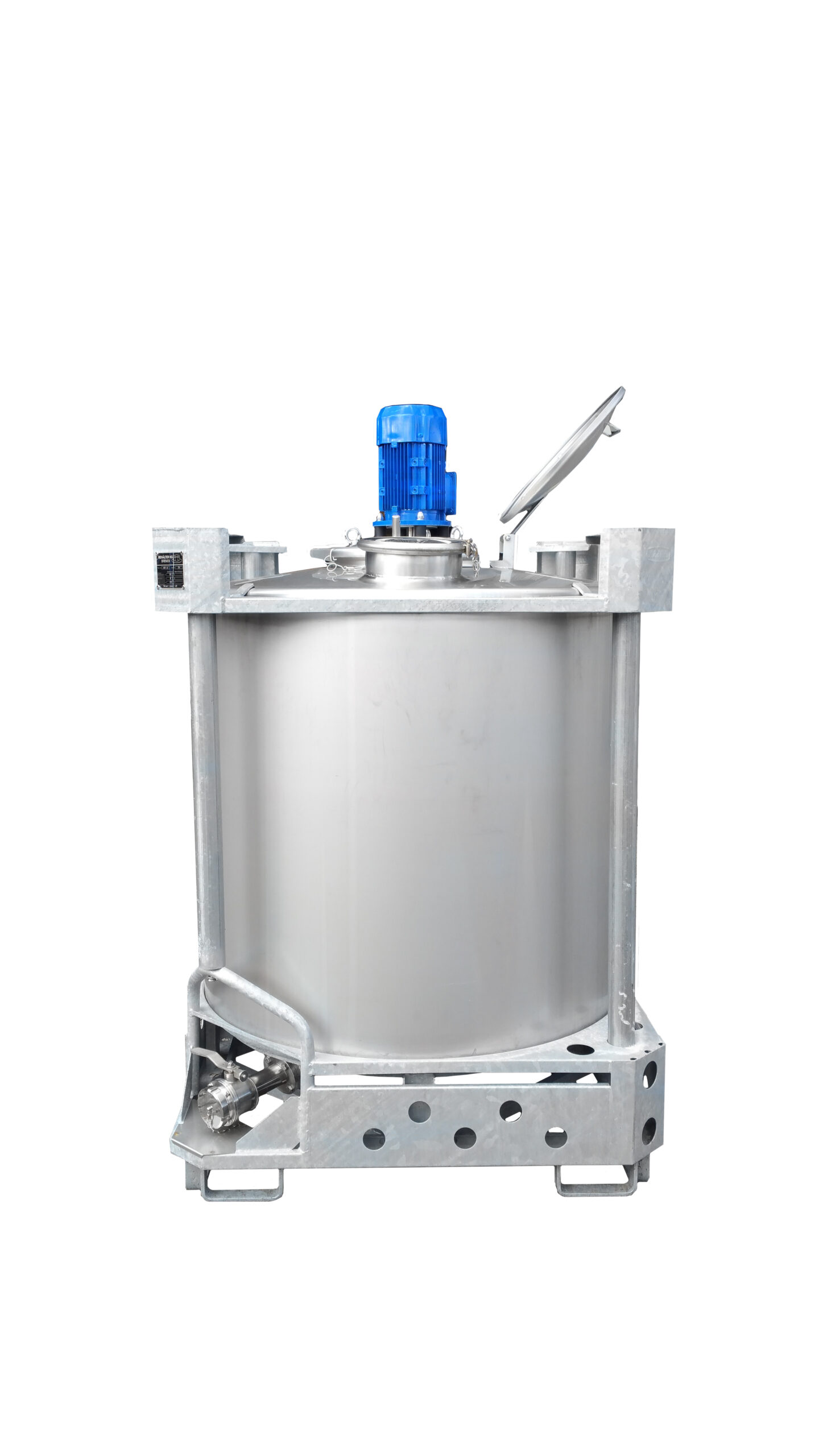 Välj 1023 liter tank i Rostfritt 304 för professionell lagring inom processindustri. Med volym: 1023 liter, med ett arbetstryck på ATM - atmosferic, max arbetstemperatur: 80 °C, vätskeberörd yta: SS AISI 304 (V2A), konfiguration: single-skin, stationär tank, utan total urtappning, fixeringspunkter i galvanised steel, utan dokumentation, utan teknisk ritning, med märkskylt, utan fläns för omrörare, varvtal: 1.500, med kraft på 1,10 kW, invändig diameter på 1.080 mm, modell: Vertikal, tillverkad i Rostfritt 304, med omrörare, utan uppvärmning/kylning, utan isolering, cylinderns höjd är 1.000 mm, ny är den konstruerad för långsiktig och säker användning.