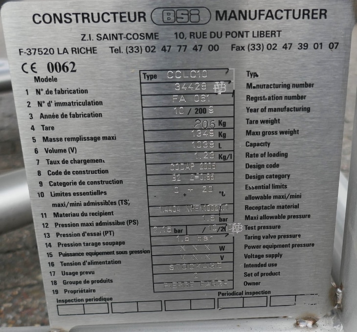 Pharmacy; Frame, Aisi 304; manhole diameter approx. 375 mm; slight differences in the design, e.g. outlet diameter (1 x 40 mm; 1 x 48 mm (the type plate is included loose with this container));