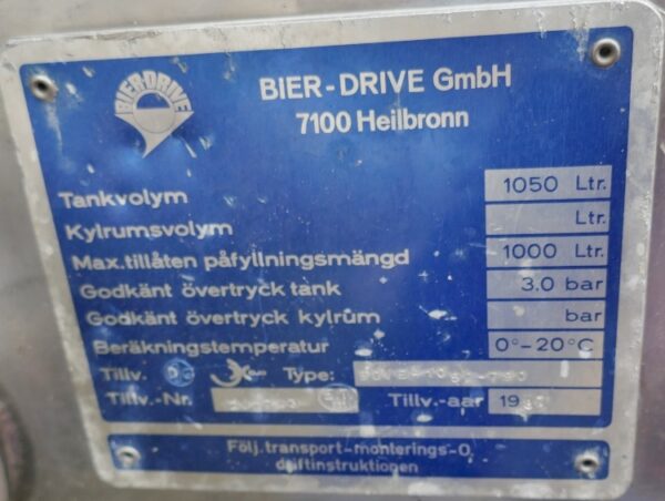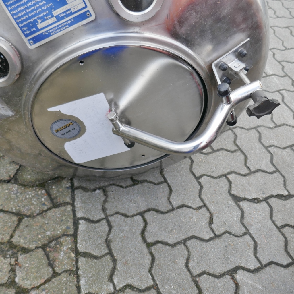 Brewery; Tanks loose – frame no longer present; 1 manhole diameter approx. 400 mm in the front bottom (manhole cover fastening screws damaged)
