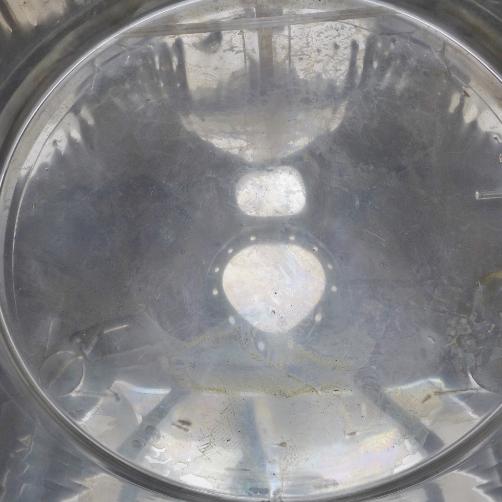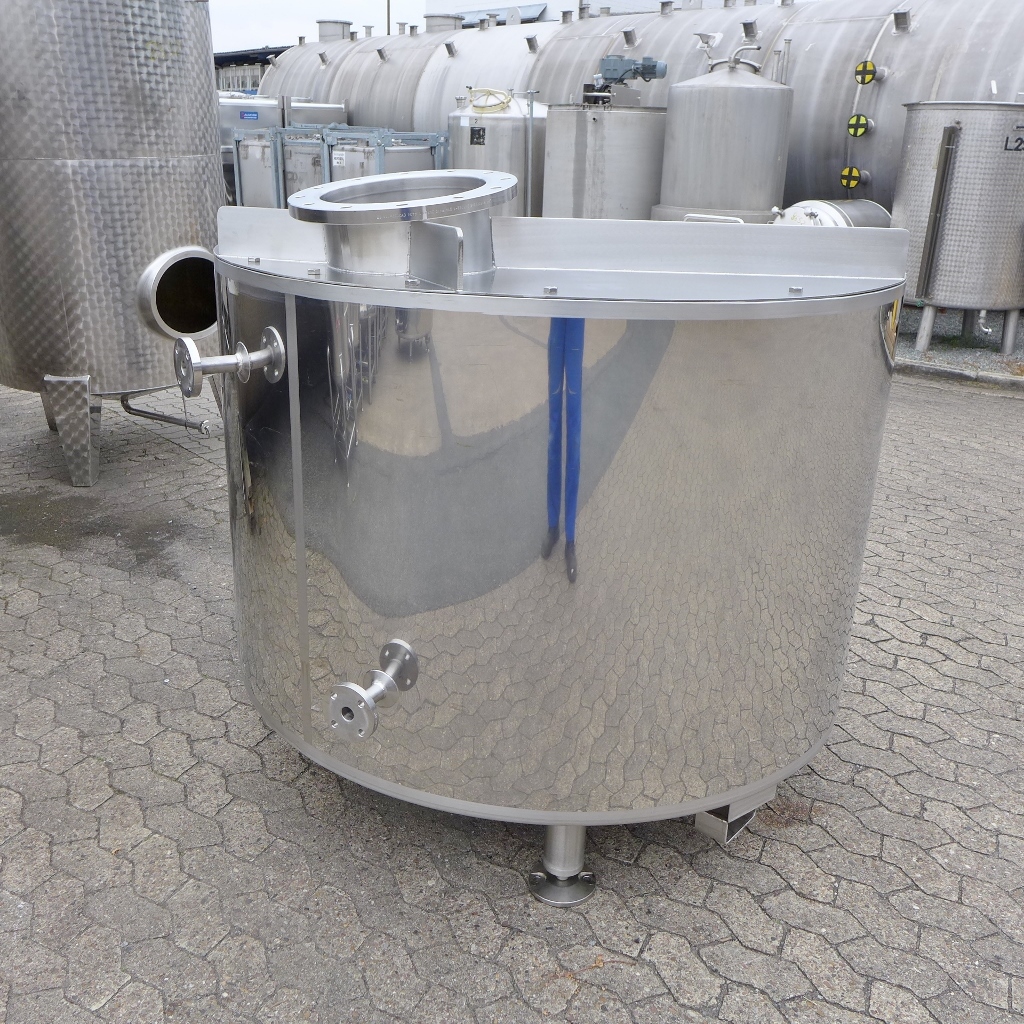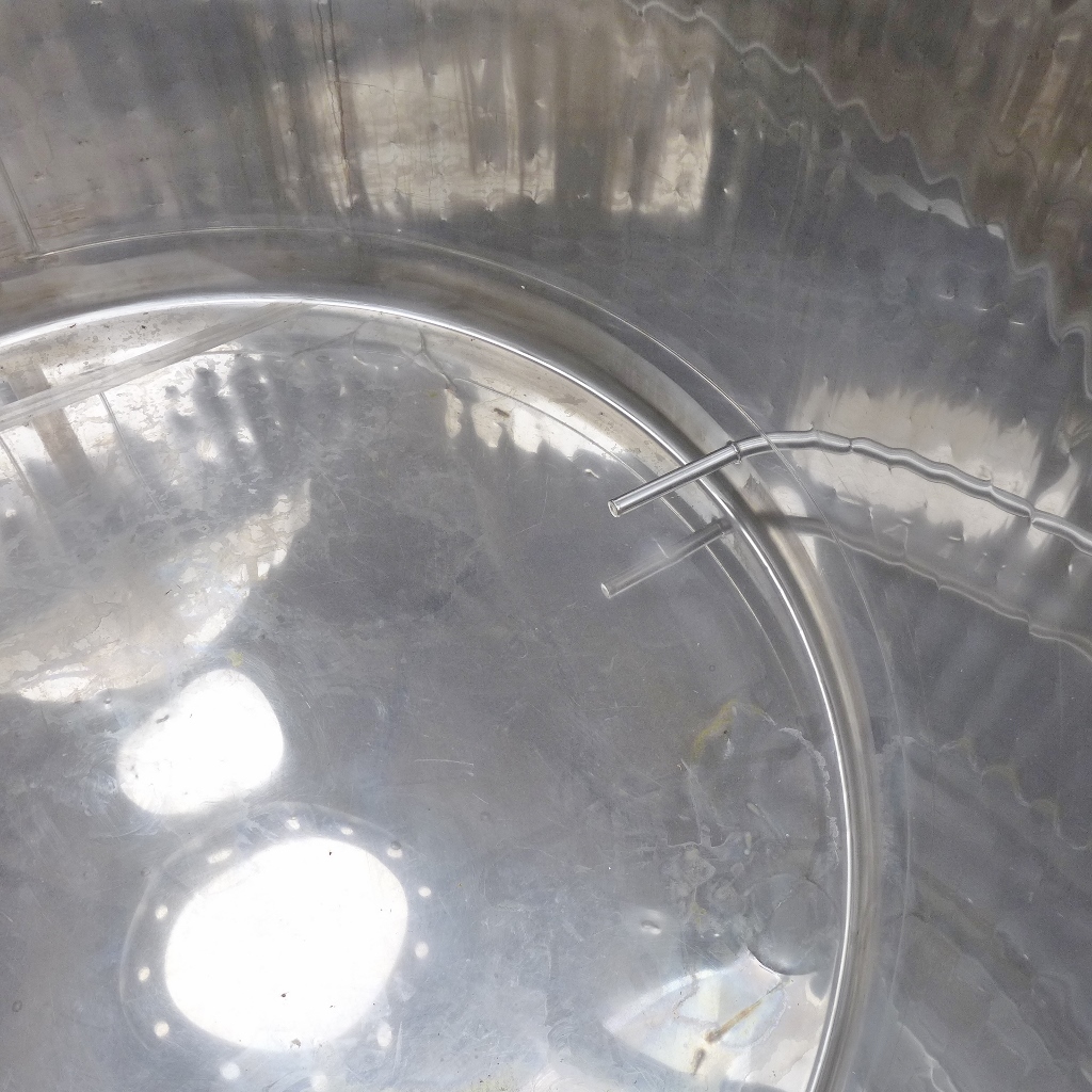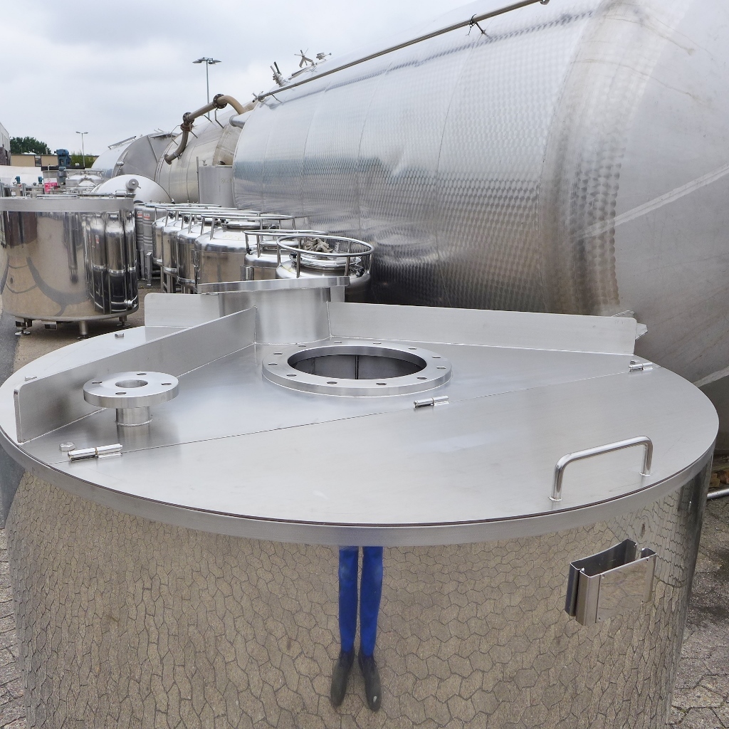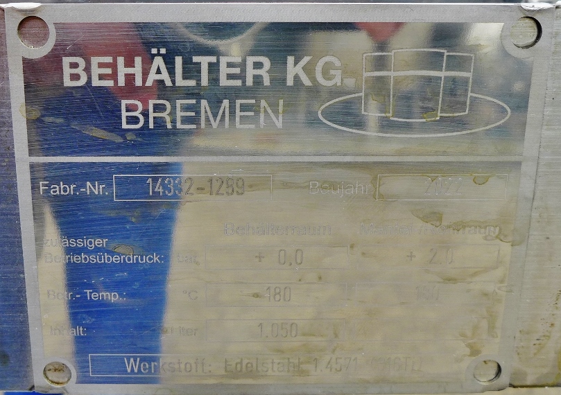 Outlet DN 60 DIN 11851; reinforcement ribs inside under the upper bottom (removable); 2 fork pockets on the outside of the lower bottom; we can’t give any guarantees about the heating/cooling jacket