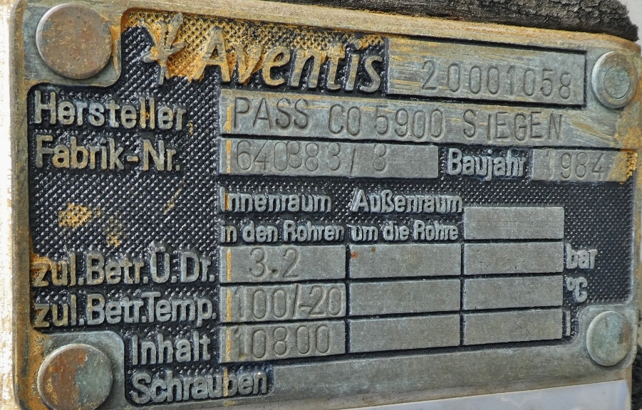 Brine tank (water / salt solution) in a chemical plant; Manhole cylinder DN 600; double outlet DN 50; some residues of previous content
