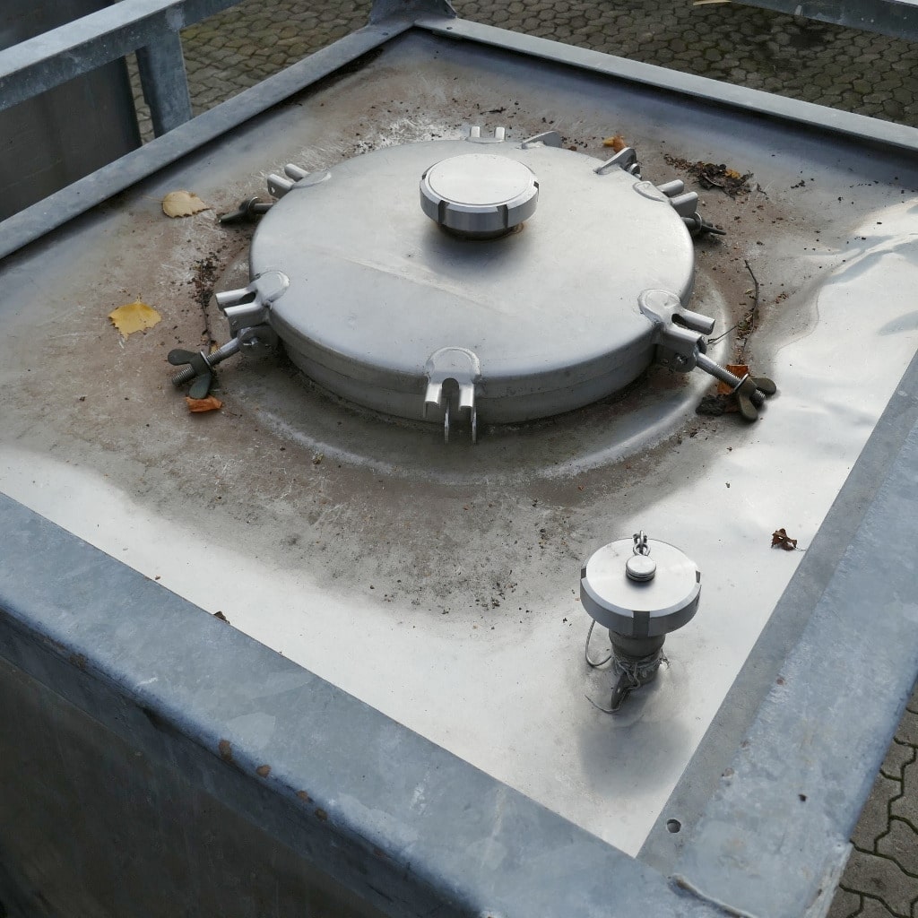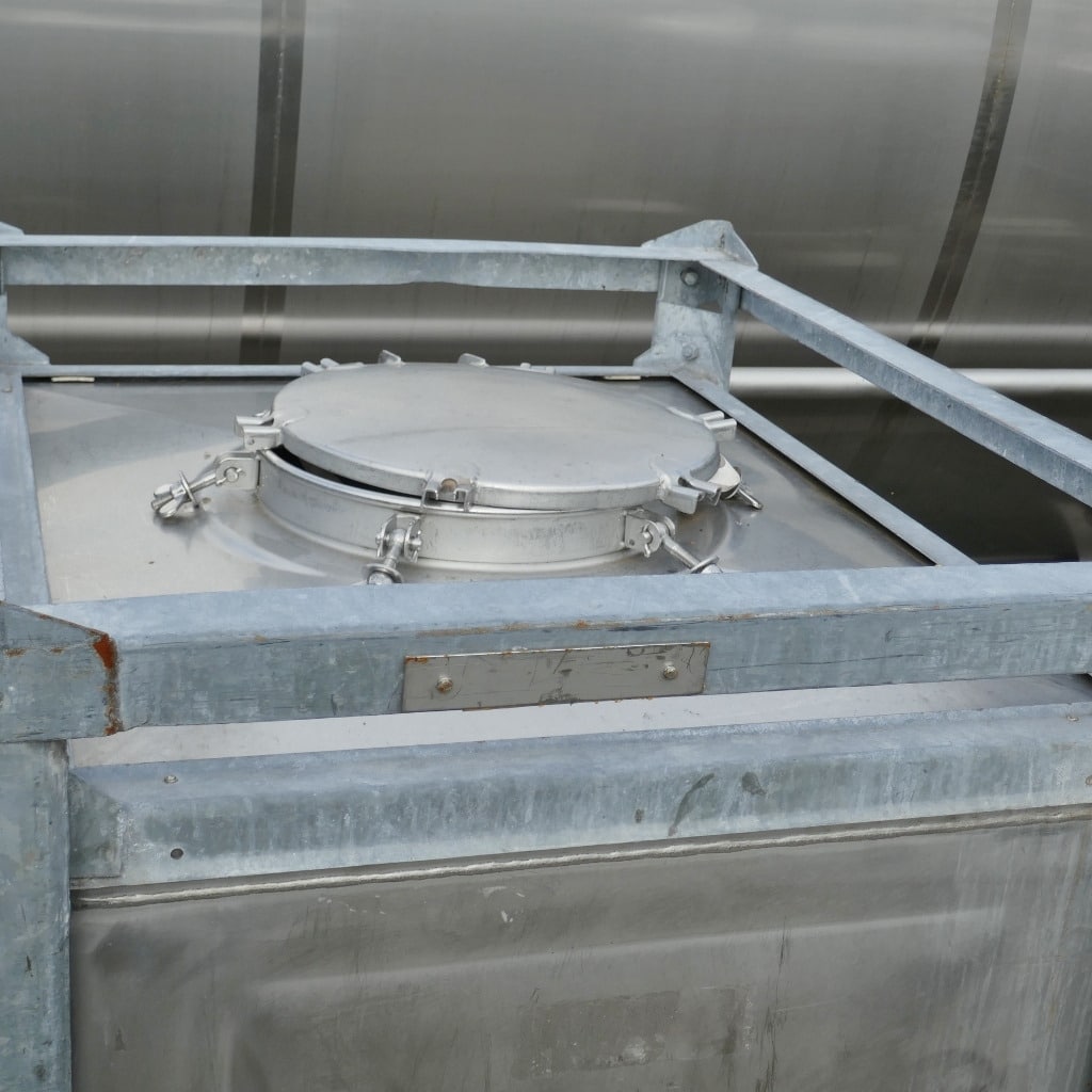 Cosmetics; Frame, Fe (galvanized); 1 container without type plate: the top of this container is slightly dented, it has minor dents in the wall and 1 screw connection of the manhole cover is