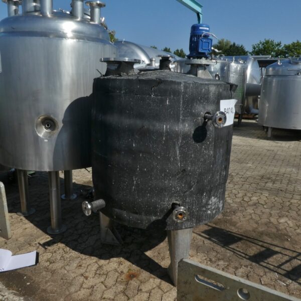 ethanol; heating coil not suitable for steam heating; insulation jacket non-existent; some residues of previous content; we can’t give any guarantees about the heating/cooling jacket; we can’t give