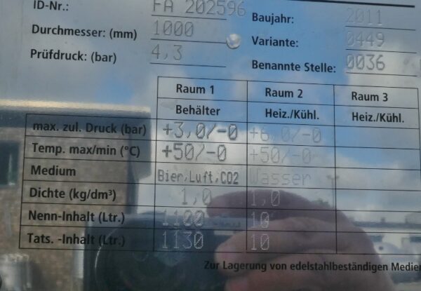 fair tank – slight signs of wear; yeast plug mounted inside; we can’t give any guarantees about the heating/cooling jacket