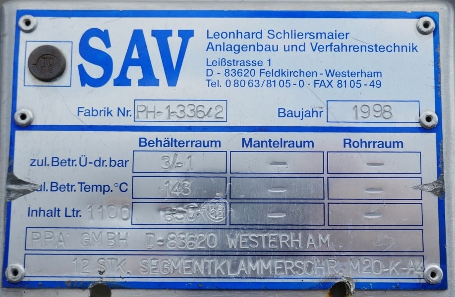 1100 liter tank i Syrafast 316