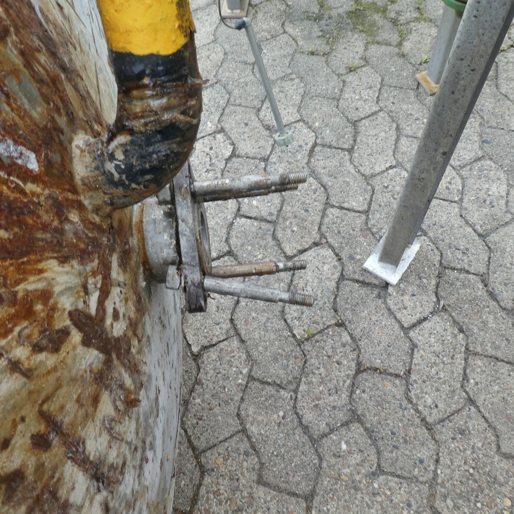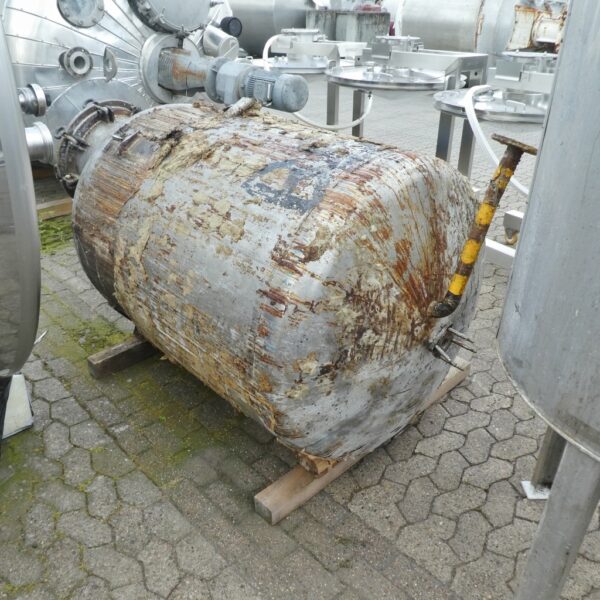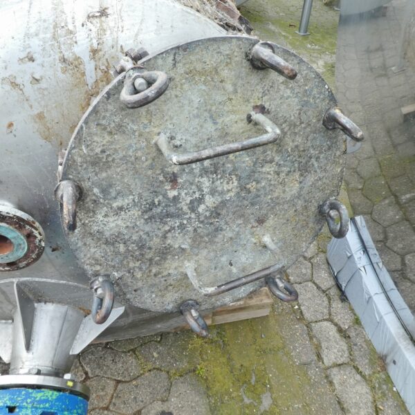 adhesive production; former support brackets were cut off by dismantling and are not available anymore; 1 heating connection cut off; tank with stronger adhesions; manhole cover plated; we can’t