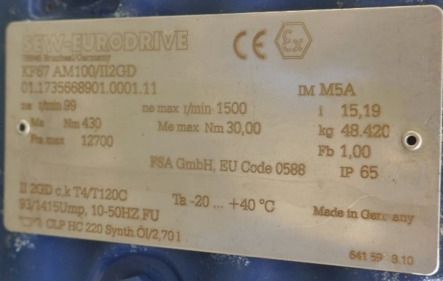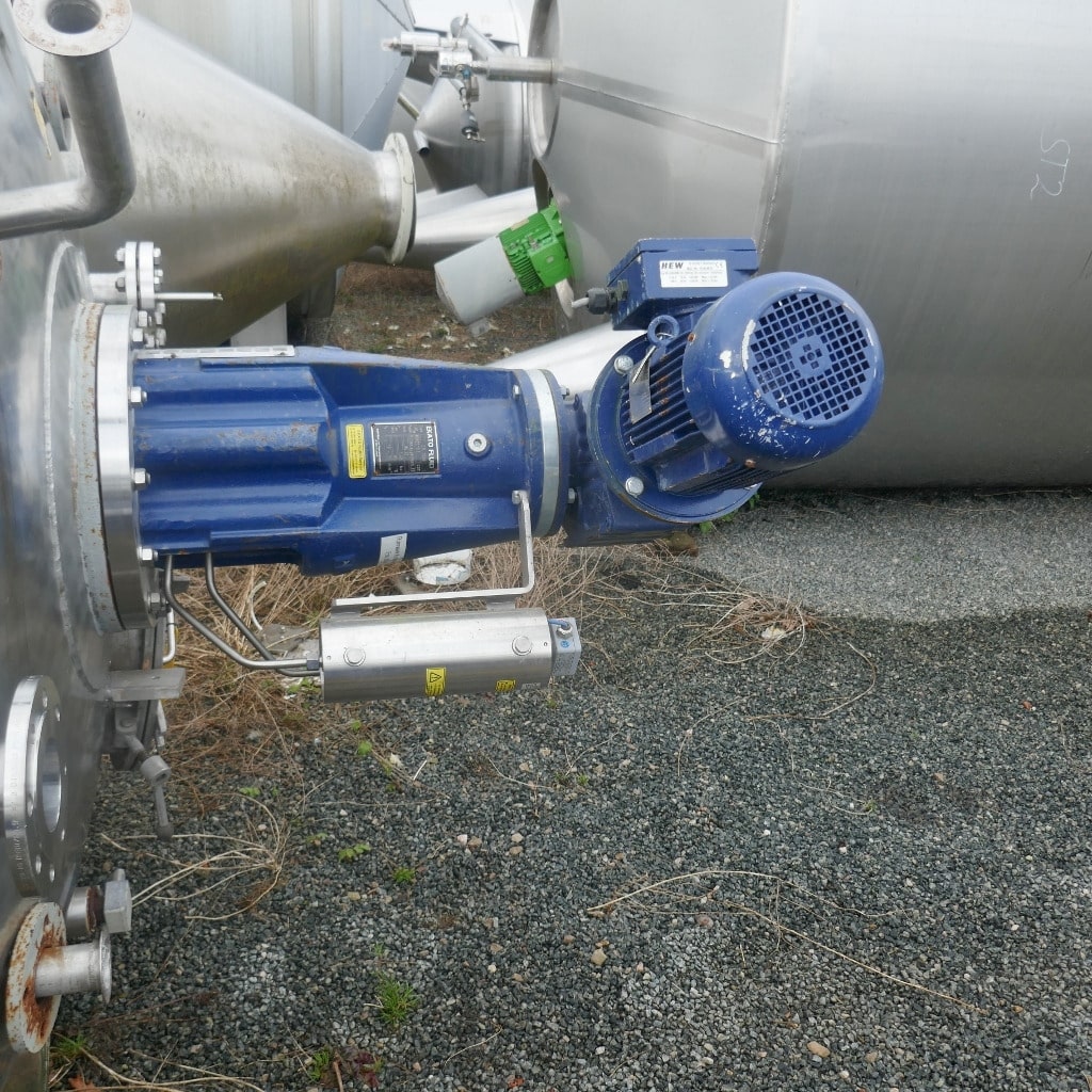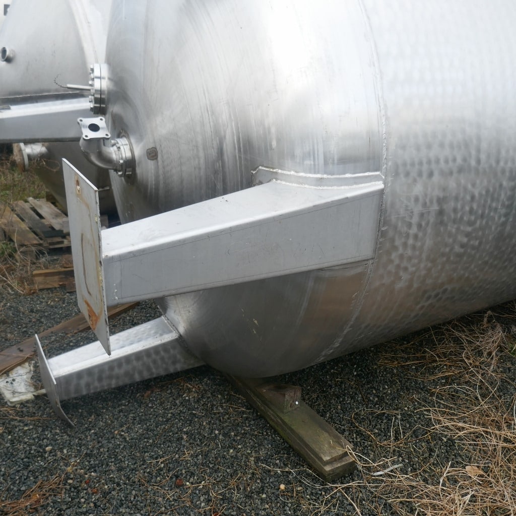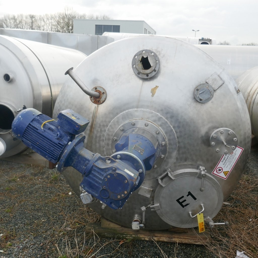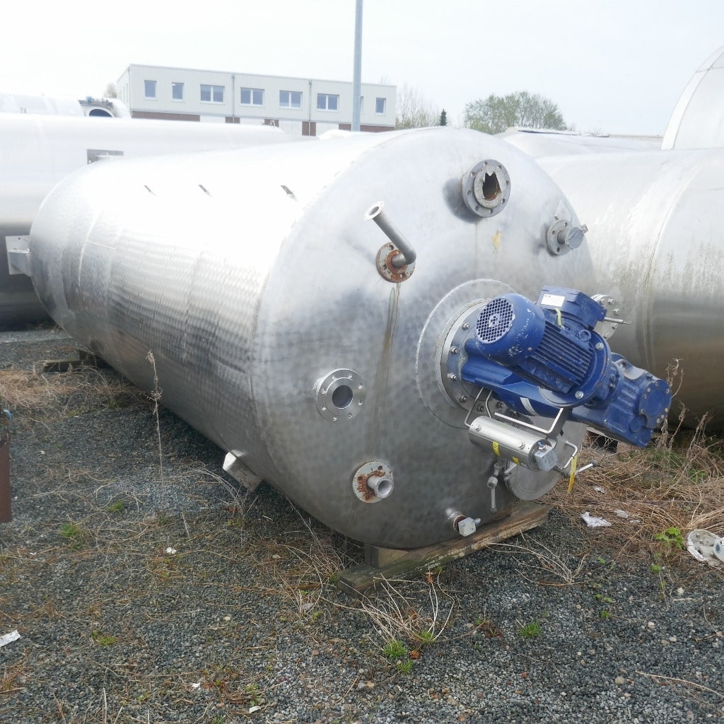 Additional information: Stainless steel 304 ladder steps inside the tank; the base plate of 1 tank foot is slightly bent (see photos) Volumetric volume (L): 11.000 L Pressure in tank: ATM - atmosferic Material wet parts: SS AISI 304 (V2A) Model: vertical Configuration: single-skin Heat exchanger: no Insulation: no Mobile tank: no Total discharge: yes Documents included: no Technical drawing included: no Registration plate on the tank: no Flange for agitator: no Position of manway: headside Outlet of tank: 38 Agitator: yes Number of revolutions: 19 - 93 Power: 3 Internal diameter tank: 1.720 mm Cylinder height: 4.700 mm Total height of tank: 6.650 mm