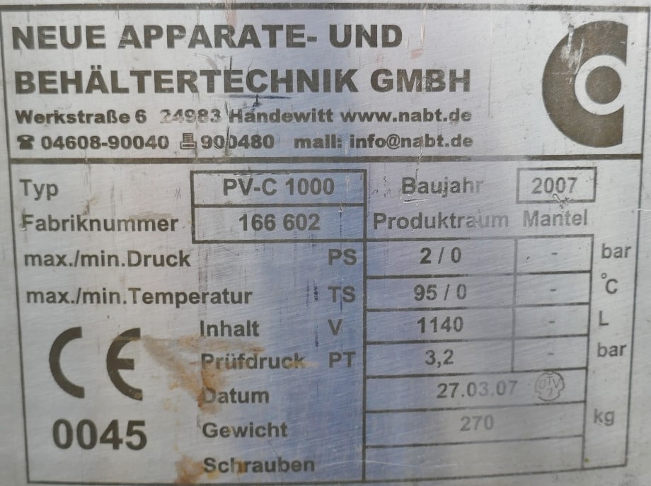 1140 liter tank i Syrafast 316