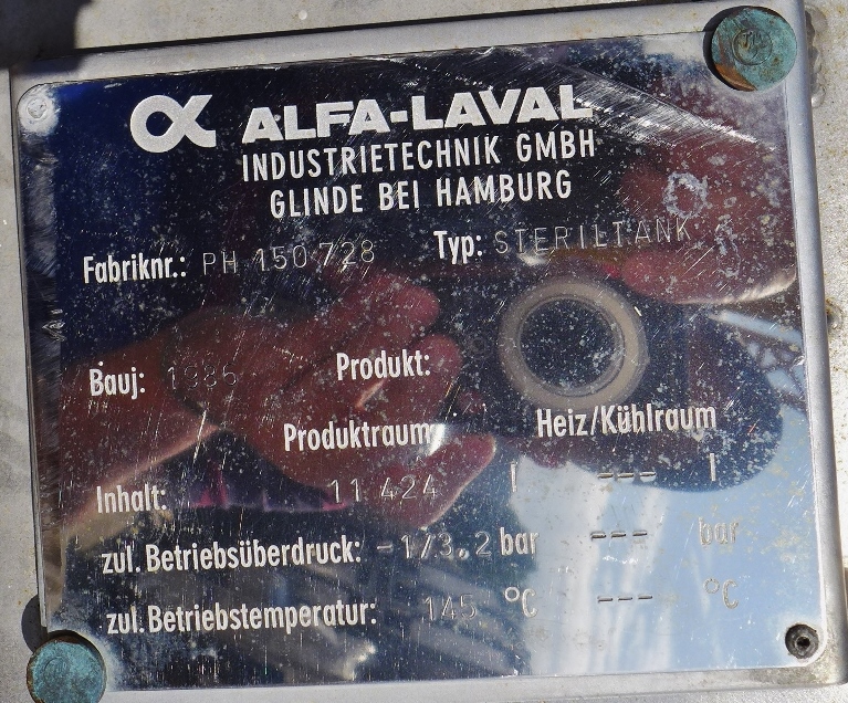 Dairy; Double jacket with trickle ring – only suitable for pressureless cooling; bumps in the double jacket; Double jacket cladding in the area of the upper bottom partially detached (see photos);