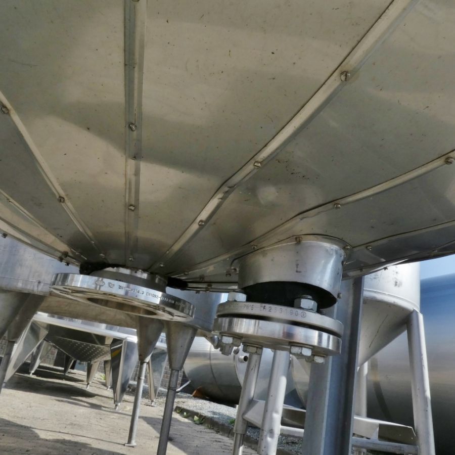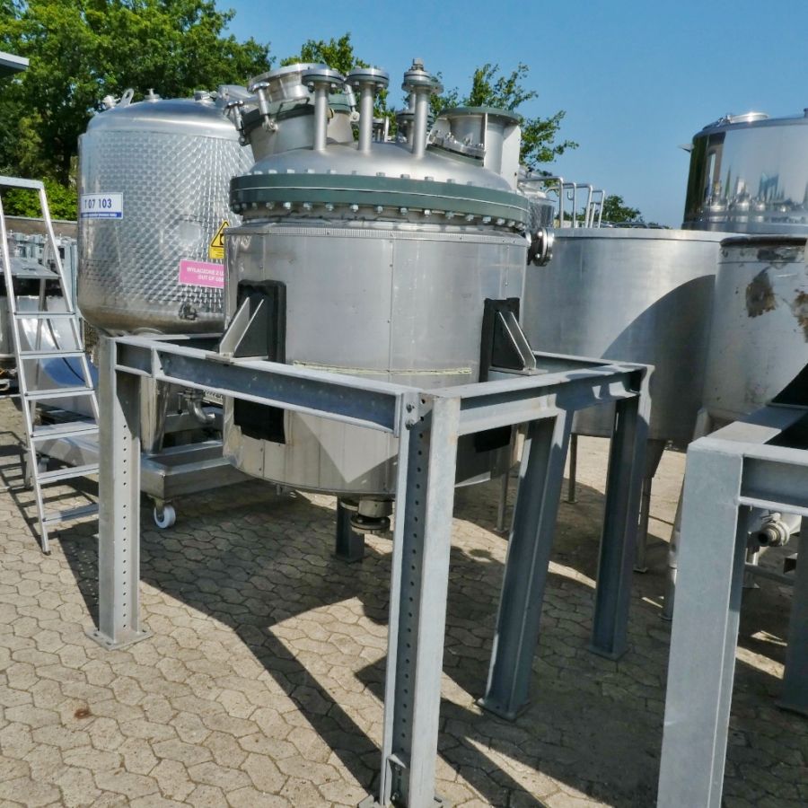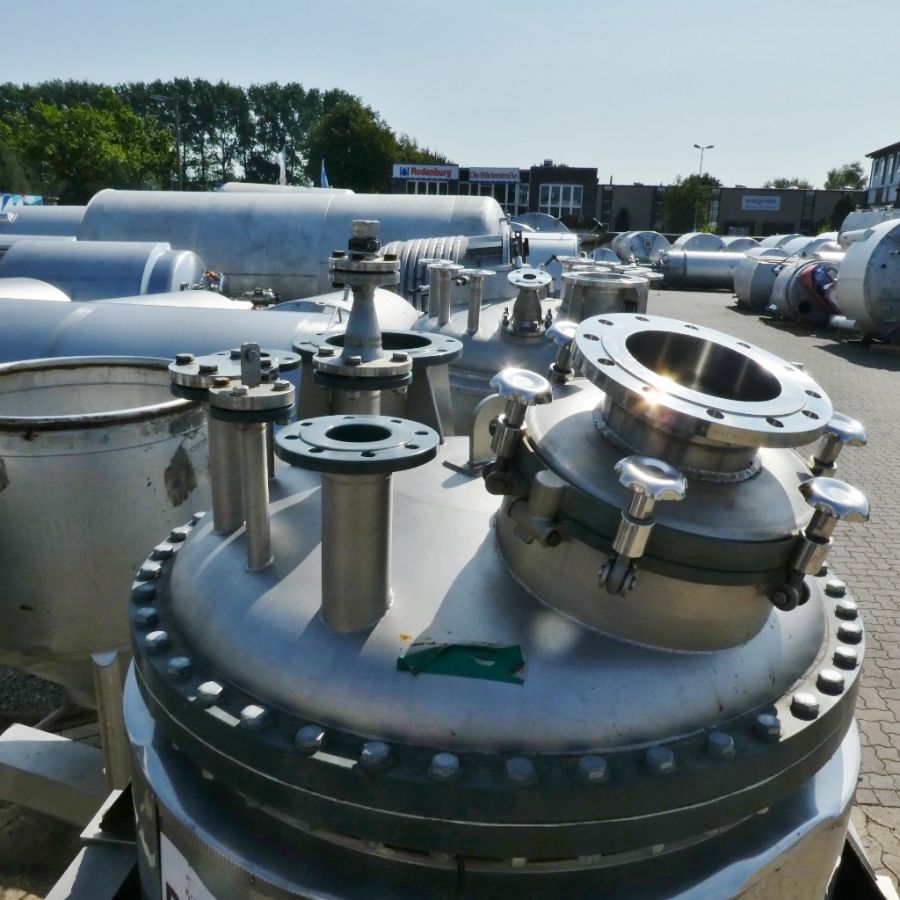 För industriella behov inom kemikaliehantering är 1150 liter tank i Syrafast 316 ett tillförlitligt val. Tankens egenskaper, inklusive volym: 1150 liter, med ett arbetstryck på pressure and vacuum, max övertryck: 0.60 Bar, undertryck: 1 Bar, max arbetstemperatur: 120 °C, vätskeberörd yta: SS AISI 316 (V4A), konfiguration: insulated with heat-exchanger, stationär tank, total urtappning finns, Värmeväxlare: RVS 316, utan dokumentation, utan teknisk ritning, utan märkskylt, inklusive fläns för omrörare, cylindervägg på 4 mm, botten är 4 mm tjock, invändig diameter på 1.100 mm, modell: Vertikal, tillverkad i Syrafast 316, utan omrörare, med uppvärmning och kylning, isolerad, trycktank, ytterdiameter: 1.250 mm, cylinderns höjd är 870 mm, total höjd: 2.600 mm, begagnad, stödjer stabil och säker drift.