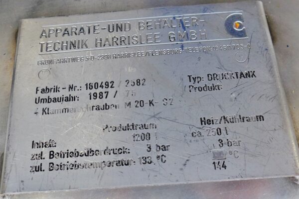 Pharmacy; Tank was converted in 1987; manhole diameter 390 mm; further technical documents available; we can’t give any guarantees about the heating/cooling jacket; we can’t give any guarantees