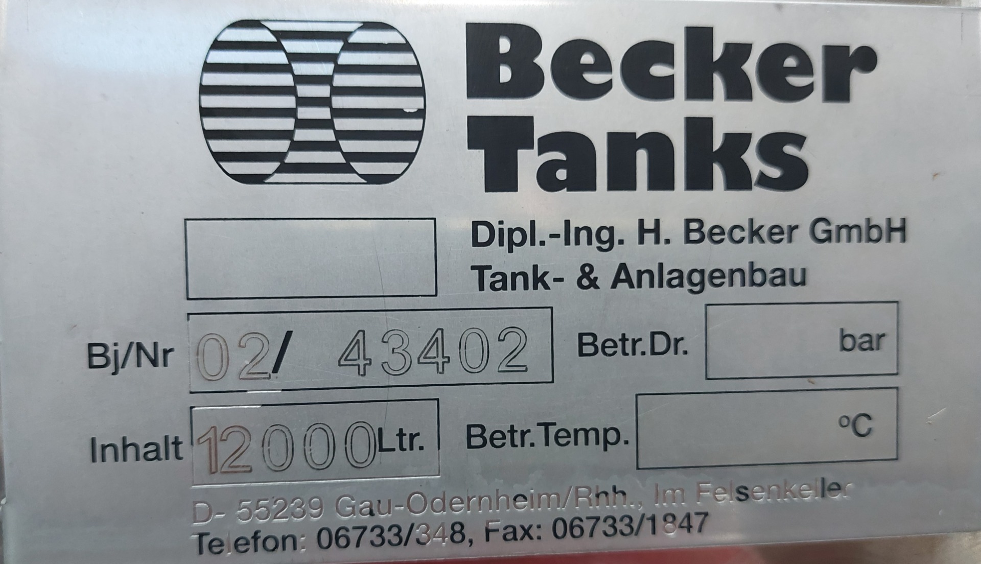 12290 liter tank i Rostfritt 304