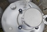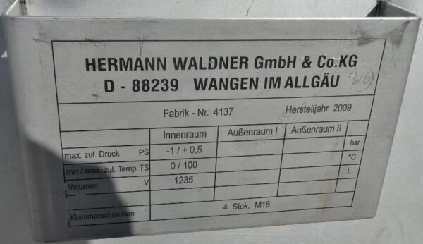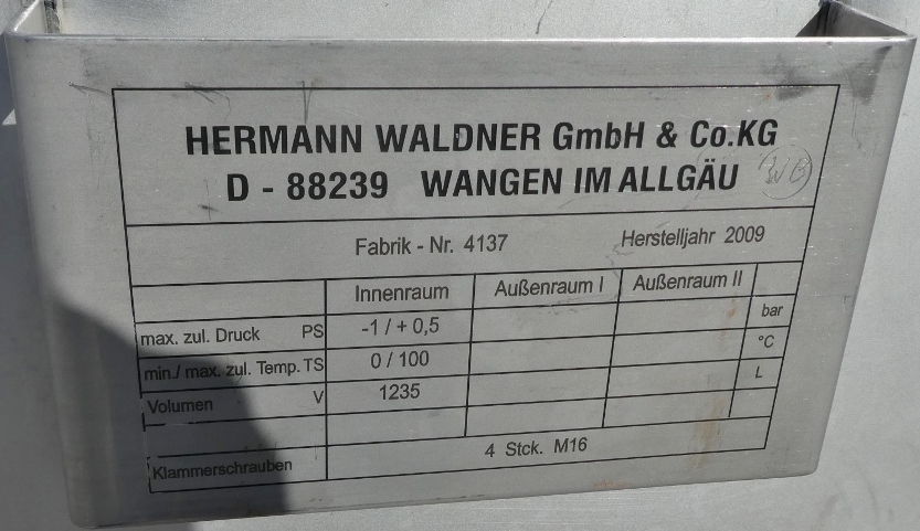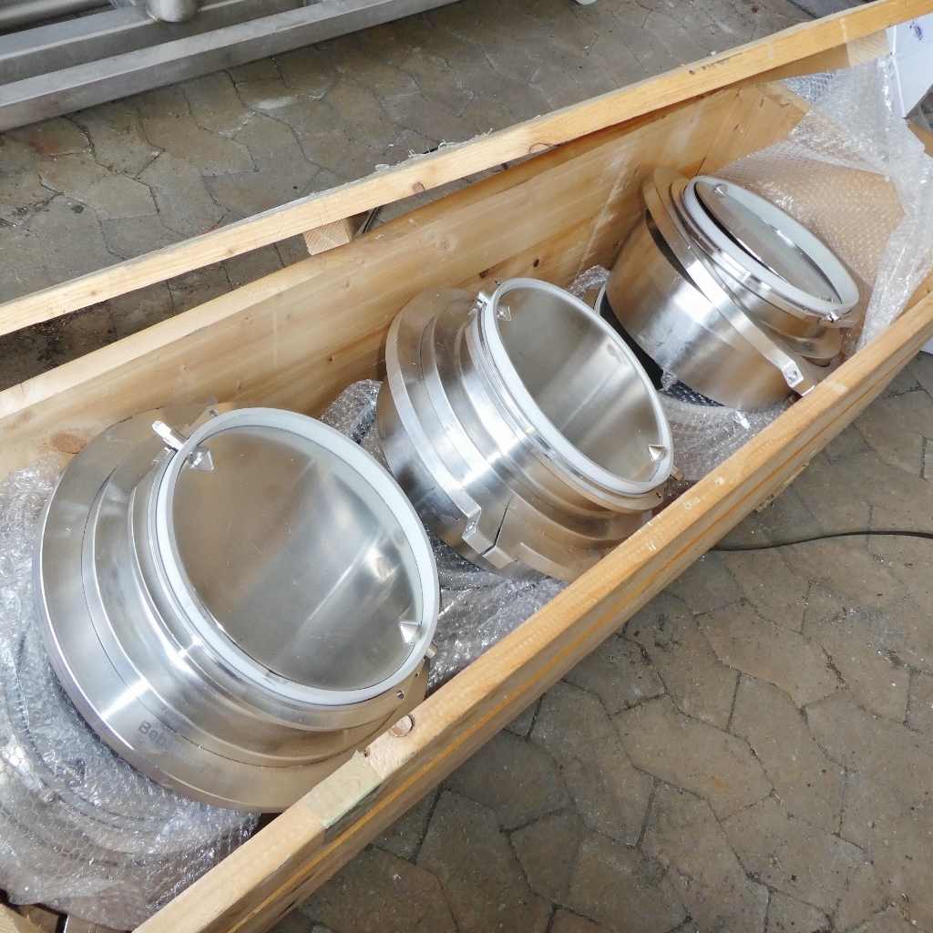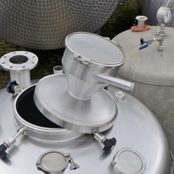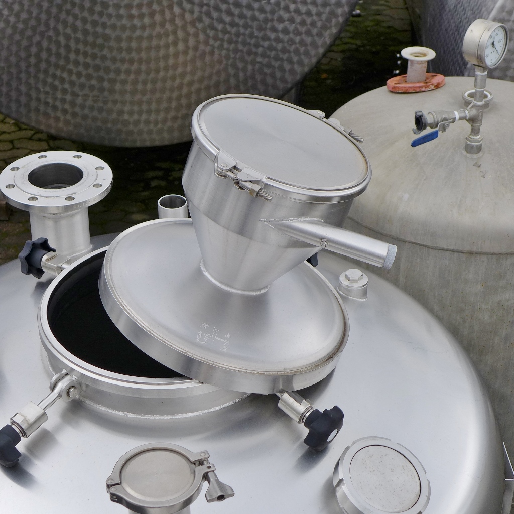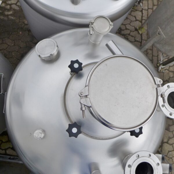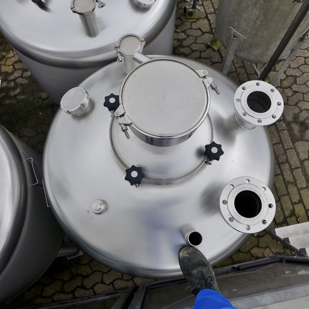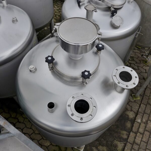pharmacy; Pneumatic butterfly valve; welded pipeline inside the tank (see photos); cone height approx. 530 mm; minor differences in the design of the tanks possible