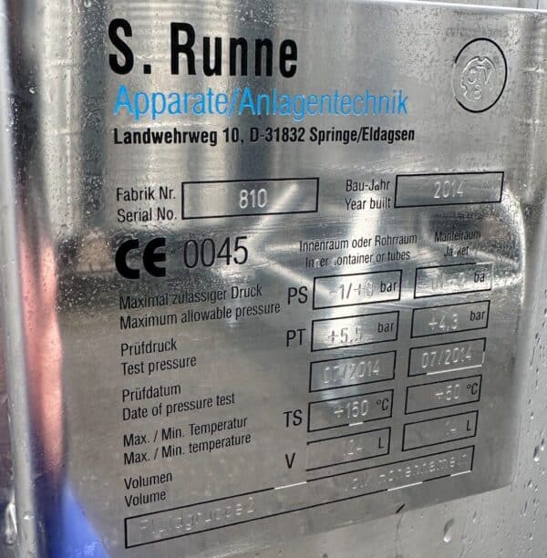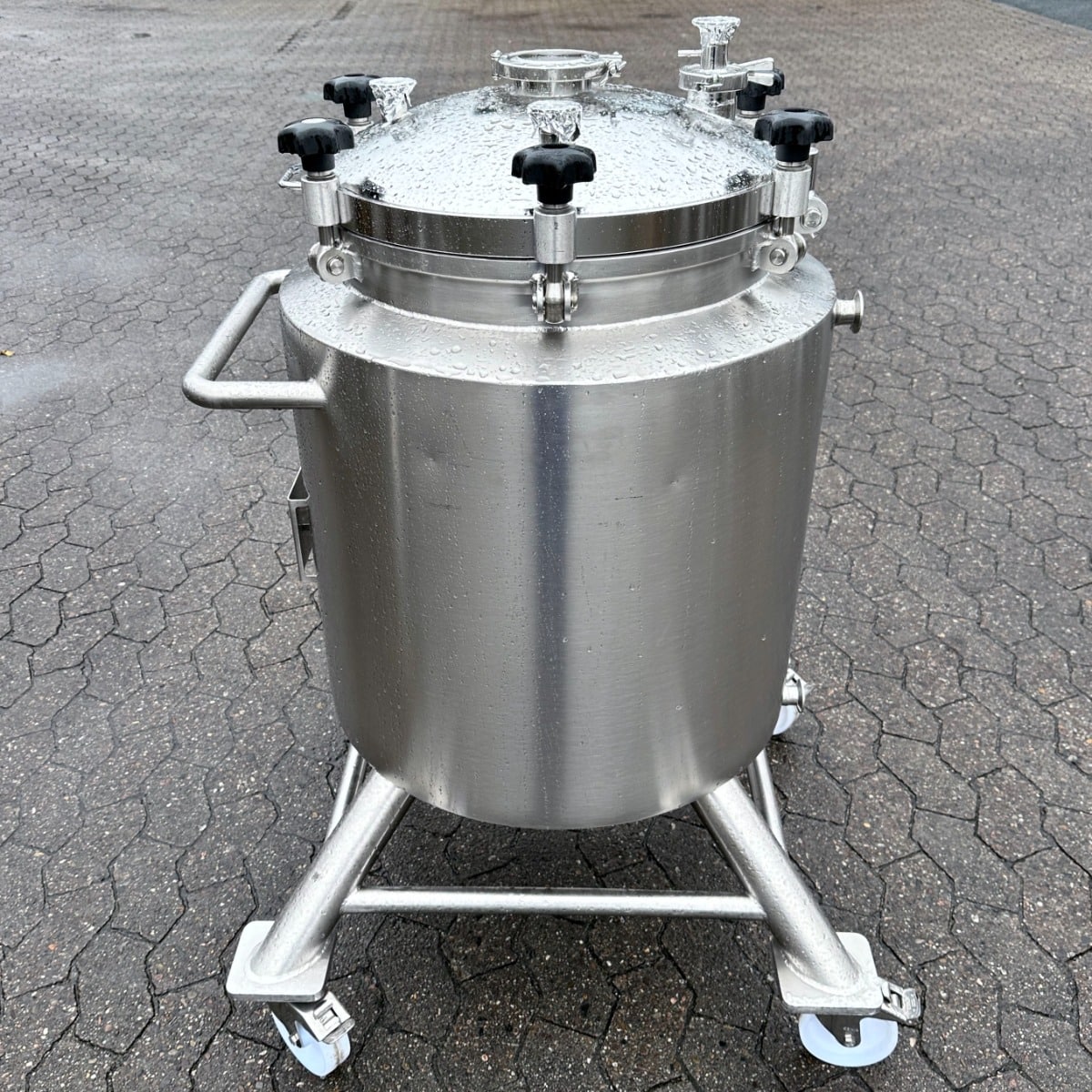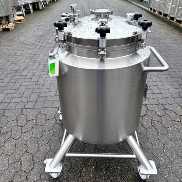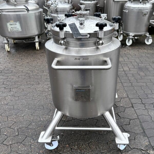 pharmacy; Filling pipe inside the tank (see pictures); GEMÜ bottom outlet diaphragm valve at the outlet. Technical documentation available from the manufacturer.; we can’t give any guarantees about