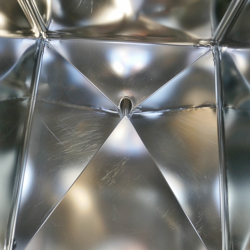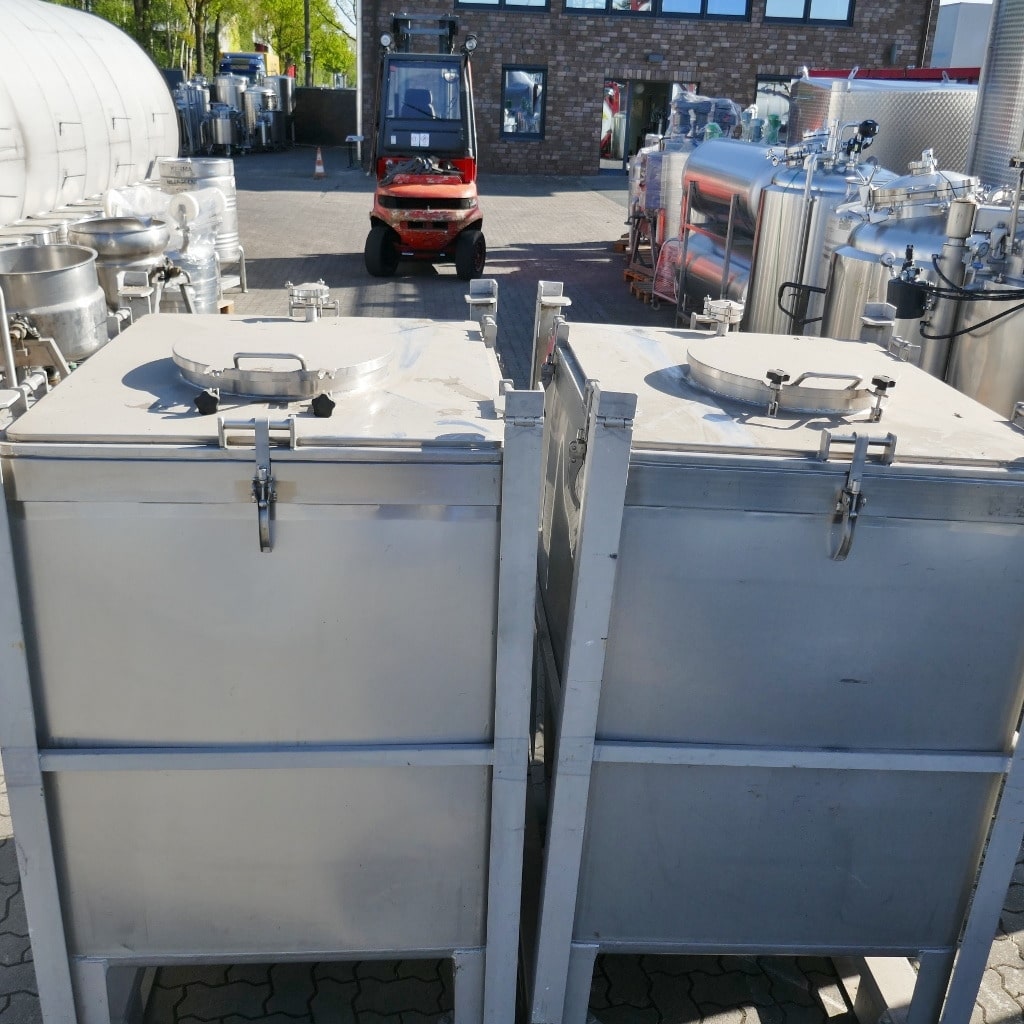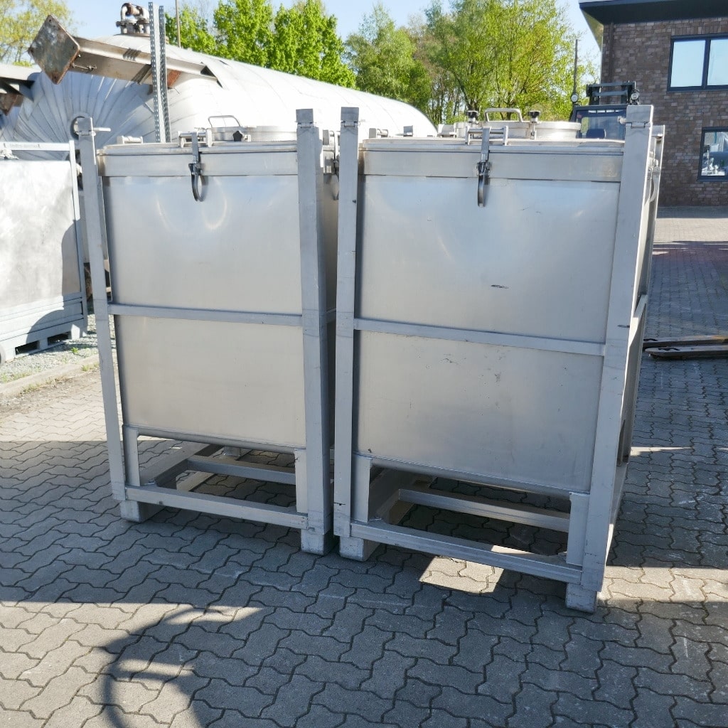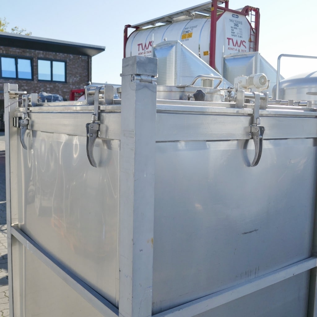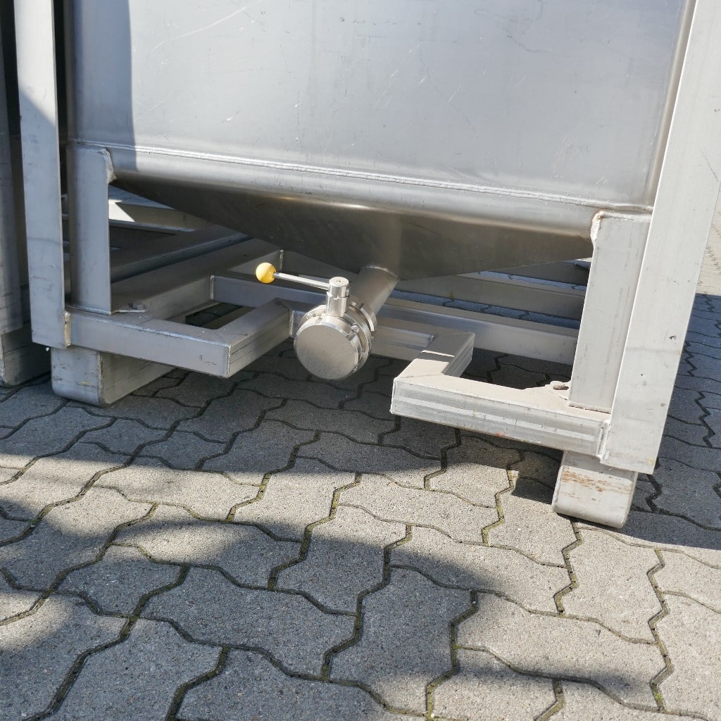 Frame, Aisi 304 (1.4541); internal dimensions approx. 950 x 1,165 mm; wall height approx. 1,150 mm; manhole diameter approx. 440 mm; traces of usage