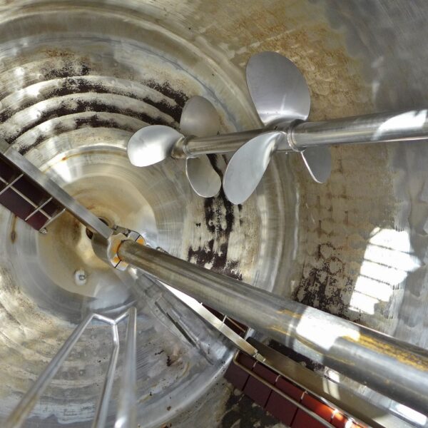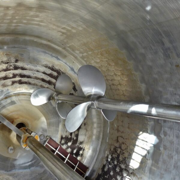 Food industry; Agitators, Aisi 304 (1.4301); 1 rectangular opening approx. 410 x 540 mm in the upper bottom; some residues of previous content; we can’t give any guarantees about the heating/cooling